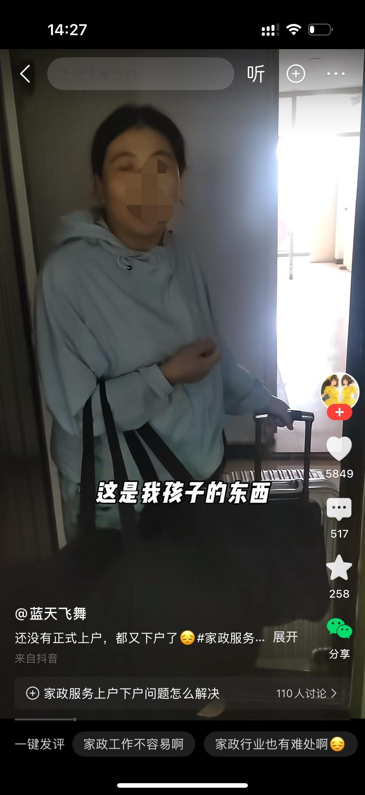 保姆上户带了一堆东西。雇主问,怎么这么多东西?保姆说,这是我孩子的物品,他不是过段时间就开学嘛。保姆边说边往里搬。雇主拦住她,你别搬了,我们家没地方放,你走吧。保姆很生气,那我这么多东西放哪?雇主说,不关我的事,你走吧。保姆抵住门,你得把我的路费报了。雇主摇摇手,使劲把门关了。保姆狠踢了门几脚,才不高兴地离开。