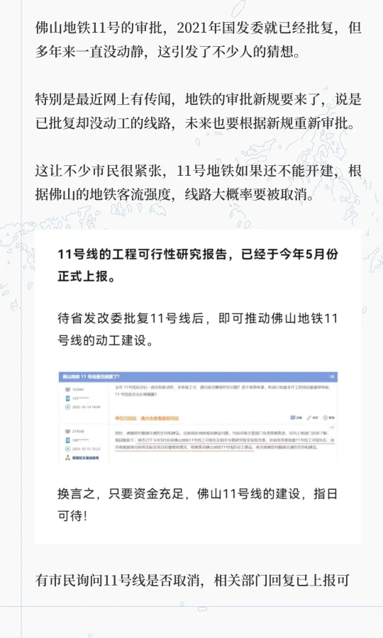 佛山11号线长期搁置,批而不建原因惹人猜想