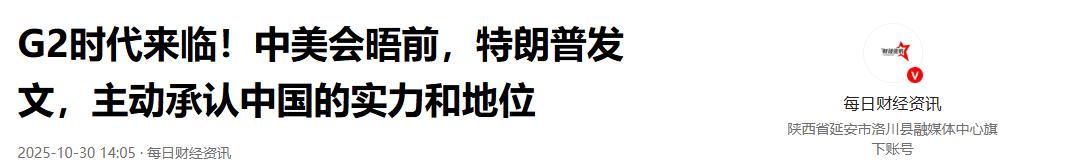 特朗普发文:承认中国实力,中美是G2 特朗普这突然一句 “G2 即将召开”,可真是把全世界的目光都给吸引过来了。要知道,这可不是随便喊喊的口号,是他在中美元首釜山会晤前,特意发在自己社交平台上的话,字里行间都是对中国实力的认账。这事儿说起来一点不意外,现在的世界早就不是美国一家独大了,中美两超多强的格局明眼人都能看出来,只不过这次特朗普把窗户纸捅破了而已。 先说说 GDP 这事儿,很多人都觉得美国 GDP 比中国高,可这里面的门道多着呢。按国际货币基金组织的预测,美国今年 GDP 大概能到 217 万亿元人民币,看着是不少,但这里面水分真不小。 美国经济七成靠老百姓消费撑着,今年上半年零售销售额还在下滑,日用品消费跌得尤其厉害,再加上通胀闹得凶,食品、汽油价格一个劲涨,老百姓钱包其实早缩水了。更头疼的是他们的债务,联邦政府欠的钱都突破 260 万亿元了,光今年要还的利息就超过 7 万亿,这日子过得其实挺虚的。 可要是换个算法,按购买力平价来算,那情况就彻底反过来了。啥叫购买力平价?说白了就是你的钱在自家地盘能买多少东西。比如一个巨无霸汉堡,美国卖 5 美元,中国卖 23 块人民币,这就说明 4 块多人民币的购买力差不多顶 1 美元。 再比如猪肉,美国一斤得 108 块人民币,咱们这儿 25 块就拿下了;普通家电那边折合 3680 块,咱们 2000 块就能买到。这么一算,中国的 GDP 早就超过美国了,预测能突破 290 万亿元,比美国足足多了 71 万亿。这数可不是瞎编的,是实打实的民生消费撑起来的,比汇率换算出来的虚数靠谱多了。 再看制造业,这可是咱们的拿手好戏,美国跟咱们比差得不是一点半点。2023 年中国制造业增加值就有 4.66 万亿美元,占了全球 29% 的份额,而美国才 2.3 万亿美元左右,咱们直接是他们的两倍还多。 而且这优势还在扩大,2025 年上半年,中国造船完工量、新订单都占了国际市场一半以上,新能源汽车销量更是占了全球六成多,动力电池企业前十里有六家是中国的,份额快到七成了。高铁、无人机、工程机械这些领域,咱们也早就跟国际先进水平平起平坐了。 美国那边呢?制造业早就空心化了,市面上六成的小家电都得从中国进口,要是咱们断了供应链,他们的物价还得涨。就连他们自己的军舰,坏了都得找韩国、日本帮忙修,产能根本跟不上。反观咱们,从基础焊接到自主研发动力系统,再到军民融合的生产模式,效率提得飞快,这也是为啥咱们造船速度能甩美国几条街。制造业强了,家底才厚实,这可比靠消费和信贷撑起来的经济稳多了。 军事方面就更不用多说了,咱们在自己周边的实力早就今非昔比。之前美国总爱拿军事威慑说事,可真要在中国周边动真格的,他们压根没那底气。就说海军吧,咱们现役的军舰数量早就超过美国了,造船速度还比他们快,这都是实打实的优势。 很多专家都猜,要是中美真有冲突,大概率会在台海附近或者海上交手,到时候军舰的重要性不言而喻。美国之所以之前盯着咱们造船业打压,又是按吨位收费又是搞制裁,其实就是怕咱们军事力量再往上走。可他们越打压,咱们越争气,核心技术都攥在自己手里,根本卡不住咱们的脖子。 科技这块,中美现在基本是旗鼓相当,美国也就剩点微弱优势了,而且咱们追得特别快。就拿今年联合国重点提的量子科技来说,美国谷歌刚宣布新量子芯片 Willow,5 分钟能完成超级计算机 10 的 25 次方年才能干的活,没几天咱们的 “祖冲之三号” 就亮相了,被说成是 “目前超导量子计算的最强优越性”。去年咱们还上线了第三代自主超导量子计算机 “本源悟空”,不光对外开放,还完成了全球最大规模的量子计算流体动力学仿真。 半导体领域也是,美国之前卡咱们脖子,说不给技术、不让用设备,结果咱们死磕国产替代,华为、长江存储、中芯国际这些企业都冲了上来,现在半导体市场规模预计能突破 1 万亿元。 澜起科技的内存接口芯片还拿下了全球市场份额,就连硅谷的公司都在买咱们 AI 企业 DeepSeek 的服务。更关键的是,中美科研合作其实一直很紧密,美国研究人员跟中国同行合著的论文,比跟其他任何国家的都多,这说明咱们的人才实力是公认的。
