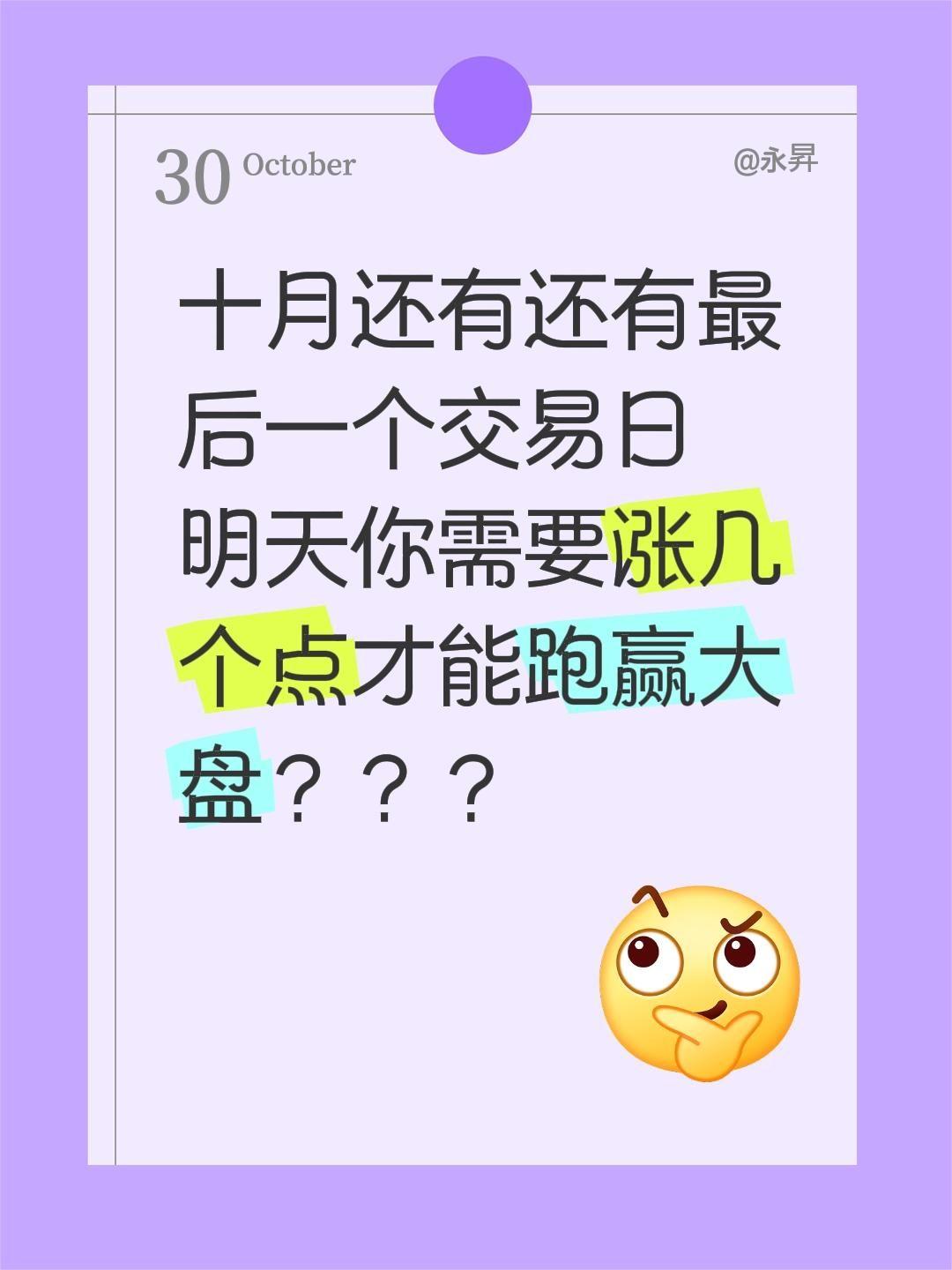 十月还有还有最后一个交易日 明天你需要涨几个点才能跑赢大盘???创作灵感 大盘