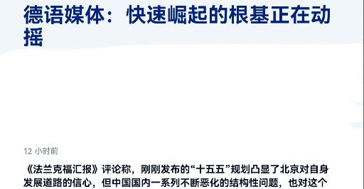 德媒给我们泼冷水了!德媒声称,中国今天在国际上显得强大无比的同时,中国崛起的根基已经动摇!10月29日,德国《法兰克福汇报》刊文声称,北京对自身发展道路的信心迅速提升,但中国国内一系列不断恶化的结构性问题,却对这个新崛起超级大国的未来构成了挑战,中国快速崛起的代价正在逐渐显现。 德媒这波操作说白了就是拿着放大镜在一堆健康报告里挑刺,专捡些无伤大雅的粉刺说成是致命溃疡,那些所谓 “动摇根基” 的论调,仔细扒拉数据和事实就知道站不住脚。 先说说被他们重点渲染的债务问题,好像中国的账本已经烂到要崩盘,可财政部今年 9 月刚公开的数据显示,2024 年末中国政府全口径债务总额 92.6 万亿元,负债率 68.7%,而 IMF 给出的 G20 国家平均负债率是 118.2%,G7 国家更是高达 123.2%,这么一对比,中国的债务水平简直是优等生水准。 更别说各地已经通过专项债置换把债务平均利息降了 2.5 个百分点,单这一项就省了 4500 亿利息支出,手里还握着充足的储备工具,这哪是根基动摇,分明是家底厚实得很。 再看产能过剩,德媒大概还活在十年前的印象里,以为中国还是遍地闲置厂房。国家统计局早就用数据给出了答案,全国工业产能利用率从 2015 年的 74.3% 一路回升,2022 年 15 年平均值达到 77%,这已经是合理区间,跟国际金融危机后美国 76.1% 的均值不相上下。 供给侧改革早就让那些落后产能出了清,就拿钢铁行业来说,现在的订单排期都到半年后了,所谓的 “过剩” 不过是结构性调整中的暂时现象,把这当成 “增长毒药” 未免太没见识。 至于企业内卷,德媒只看到了表面的竞争激烈,却故意忽略了内卷正在向创新转化的趋势。今年年初初创公司 DeepSeek 推出的 AI 模型,性能比肩美国同类产品,开发成本却低得多,这就是内卷突破后的成果。 政府还专门设了国家创业投资引导基金,奇瑞这样的企业都喊出了 “充满干劲” 的口号,民营企业的创新活力正在被激活,所谓的 “内卷消耗” 不过是转型期的必经之路,要是真没活力,哪来这么多新技术新产品冒出来。 社会焦虑被他们渲染得好像人人都活在崩溃边缘,可数据根本不支持这种说法。2024 年全国城镇调查失业率稳定在 5% 左右,是近五年来最低水平,就算青年失业率偏高,这也是欧美国家都存在的普遍问题,并非中国独有。 更别说灵活就业群体正在不断壮大,虽然还存在社保覆盖的问题,但这股力量已经成为就业市场的重要补充,政府也在逐步完善保障政策,把暂时的挑战说成 “社会崩塌”,未免太夸张。 出生率下降和老龄化加剧确实是客观情况,但这绝不是 “根基动摇” 的证据,反而催生出了新的增长极。2024 年中国银发经济市场规模已经达到 8.3 万亿元,预计 2030 年能超 20 万亿元,智慧养老市场规模也快摸到 7 万亿元,北京有家公司专门做老年人陪伴产品,生意好得很,智能养老设备市场一年就增长 20%。 政府还安排了 3000 亿超长期特别国债支持消费品以旧换新,提高低收入群体收入提振消费,这些举措都是在把挑战变成机遇,德媒只盯着老龄化的压力,却对万亿级的市场视而不见,这选择性失明也是没谁了。 说到底,德媒这些论调就是典型的 “选择性报道”,他们看不到中国政府化解风险的精准操作,看不到产业转型的扎实成效,看不到新经济的蓬勃活力,一门心思把阶段性问题放大成系统性危机。 要是真按他们的逻辑,那些负债率远超中国的发达国家早该崩塌了,可事实是中国依然保持着稳定增长,还在人工智能、银发经济这些新领域不断突破。这种带着偏见的 “提醒”,更像是没看清真相的臆想,毕竟真正的根基从来不是完美无缺,而是在解决问题中不断夯实,这一点德媒显然没搞明白。