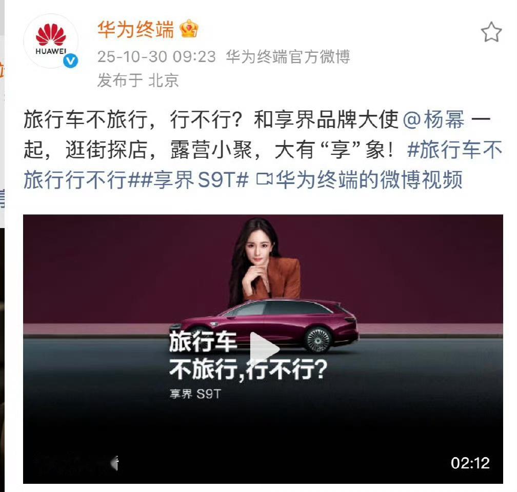 余承东官宣享界品牌大使杨幂高端车代title升级