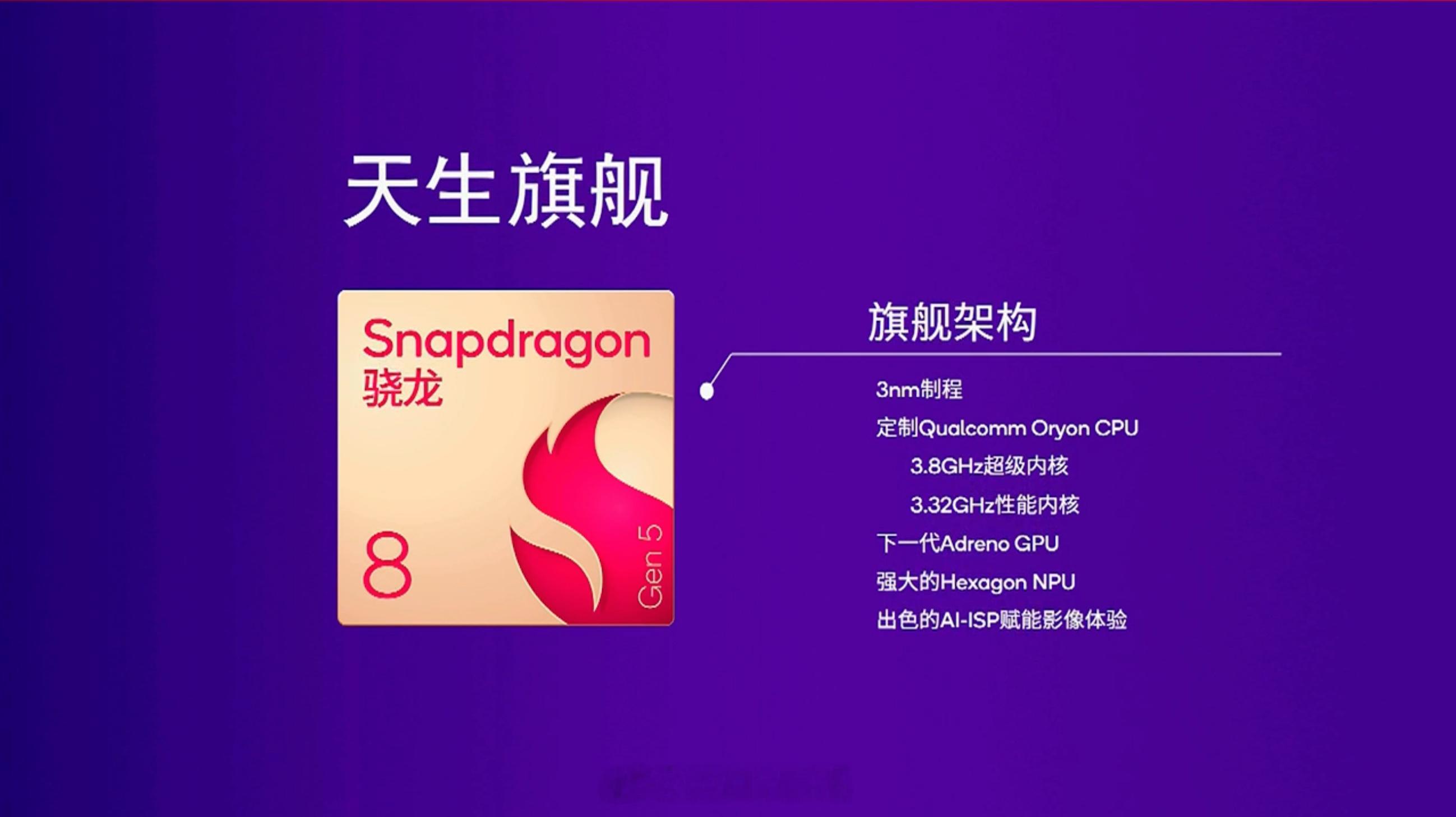 骁龙 8 Gen 5 详细规格被站哥曝光,其实骁龙峰会上有一页 Key 上写了大概规格,8 Gen 5 预计由一加首发:
