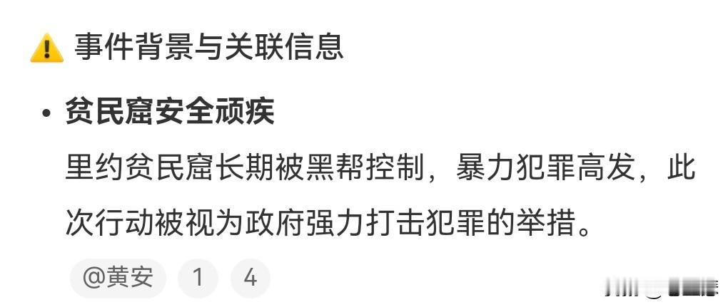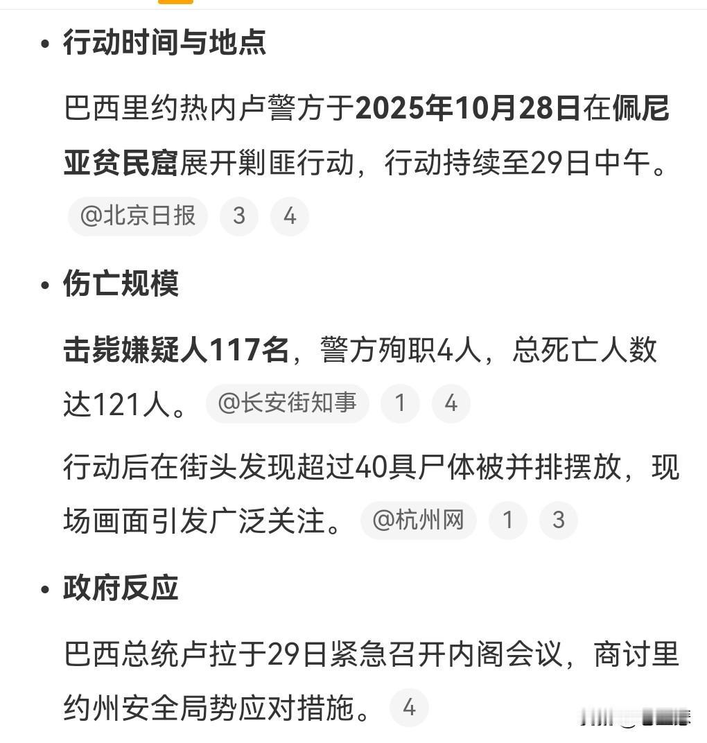 堂堂一个国家,肯定是不能让黑帮猖獗的,必须严厉打击黑帮分子。 近日巴西,巴西剿匪至少121人丧生,包括4名警察,超过40人陈尸巴西街头。 对待匪徒没有什么可讲的,必须严厉打击,这个世界上不能有犯罪分子的存在。 治安是一个国家最基本的,绝对不允许有违法犯罪的事情发生。