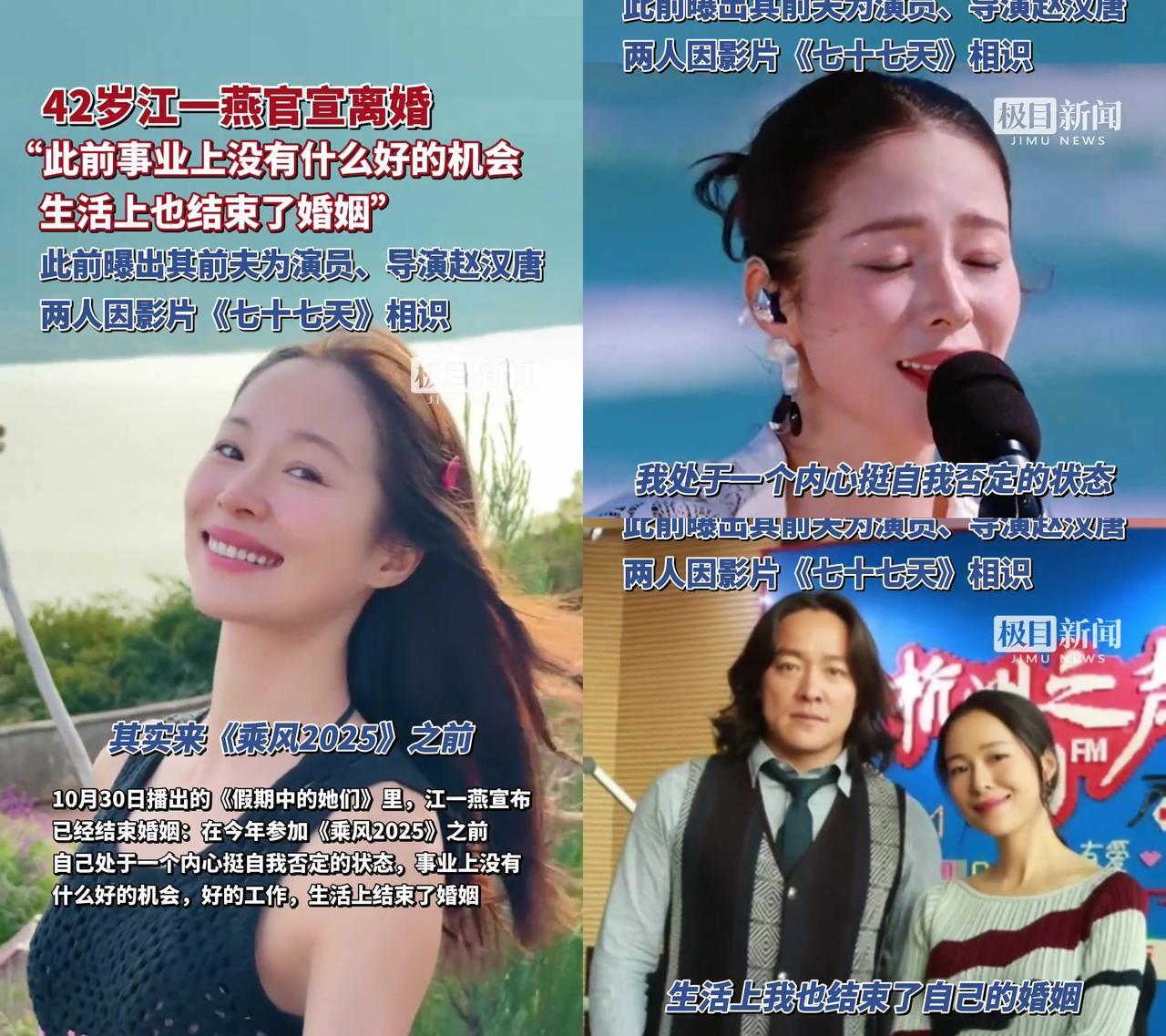 谁懂啊!刷到江一燕离婚,我第一反应是霍思燕抱着嗯哼的样子,直到看见赵汉唐才醒:哦!是《七十七天》的江一燕,不是杜江老婆! 今天她在节目里说,今年参加《乘风》前,整个人都纠结:事业没好机会,生活也卡住了,现在终于结束婚姻了。 有人说“好好的婚姻散了可惜”,也有人说“她终于能做喜欢的事了”。 但我觉得,比起勉强撑着要兼顾所有,结束消耗的关系才是捡回自己的开始,她终于能回去给山里孩子上建筑学课,窝在工作室画设计图了。 你们有没有过看错明星名字的乌龙?或者觉得结束一段消耗,才是爱自己的开始吗?