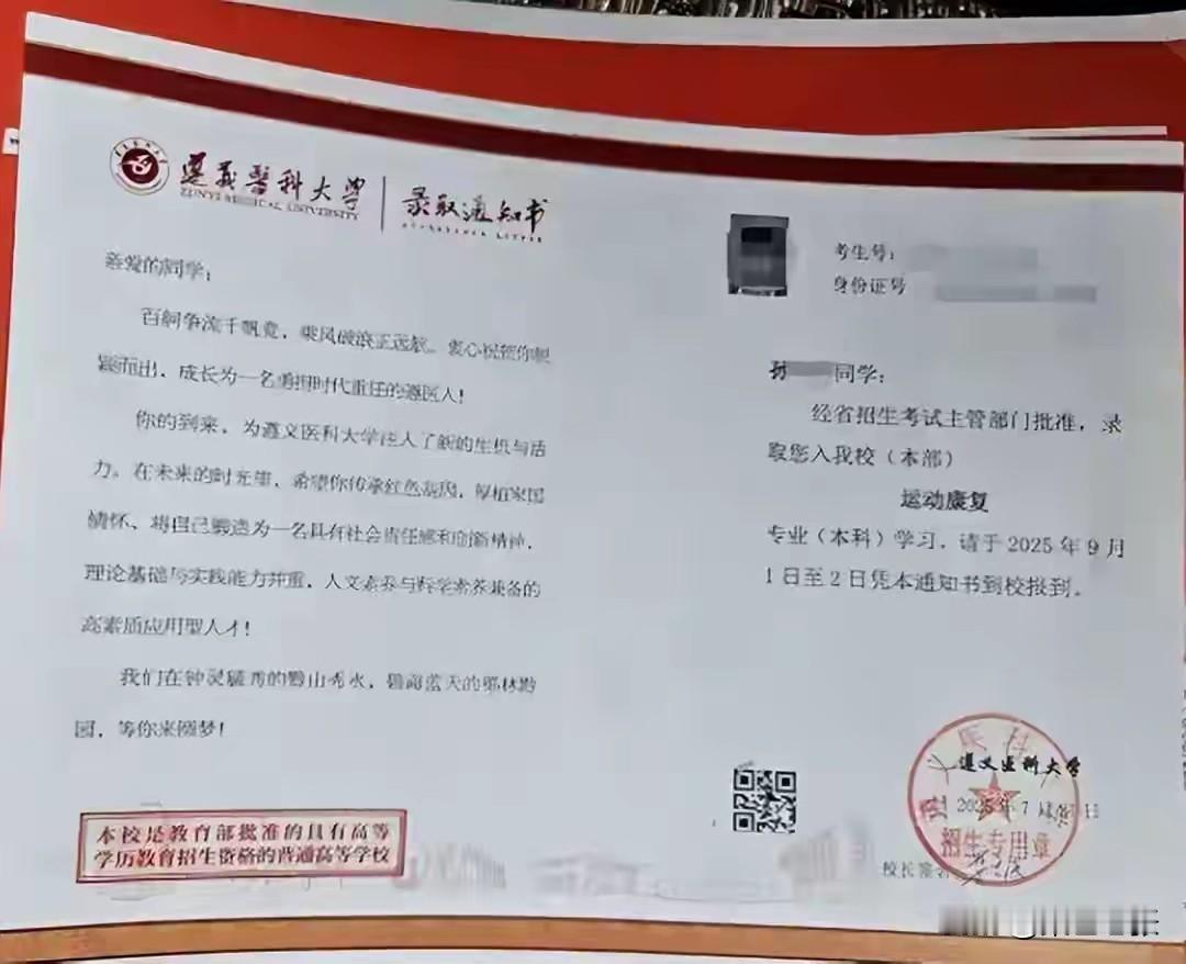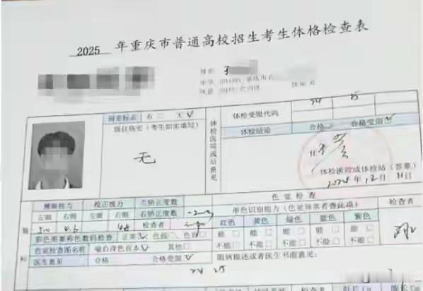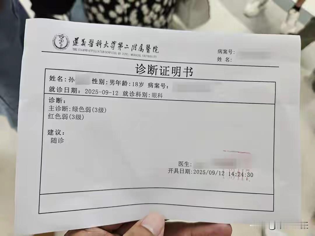 重庆一体育生高考体检正常,被遵义医科大学运动康复专业录取,入学复查却因色弱被退学,实在太惨。18岁的孙某某高考成绩502分,体育87分,综合分79分,竟落得如此结局。 高考体检表“彩色图案彩色数码检查”显示正常,大学医院却诊断为红绿3级色弱。学校依规取消其入学资格,家长称若高考查出便会选其他学校专业。如今高校招录结束,孩子只能复读,却一直没找回学习状态。这暴露出招生体检体系漏洞,一次检查结果差异,就毁了孩子大学梦,令人唏嘘。