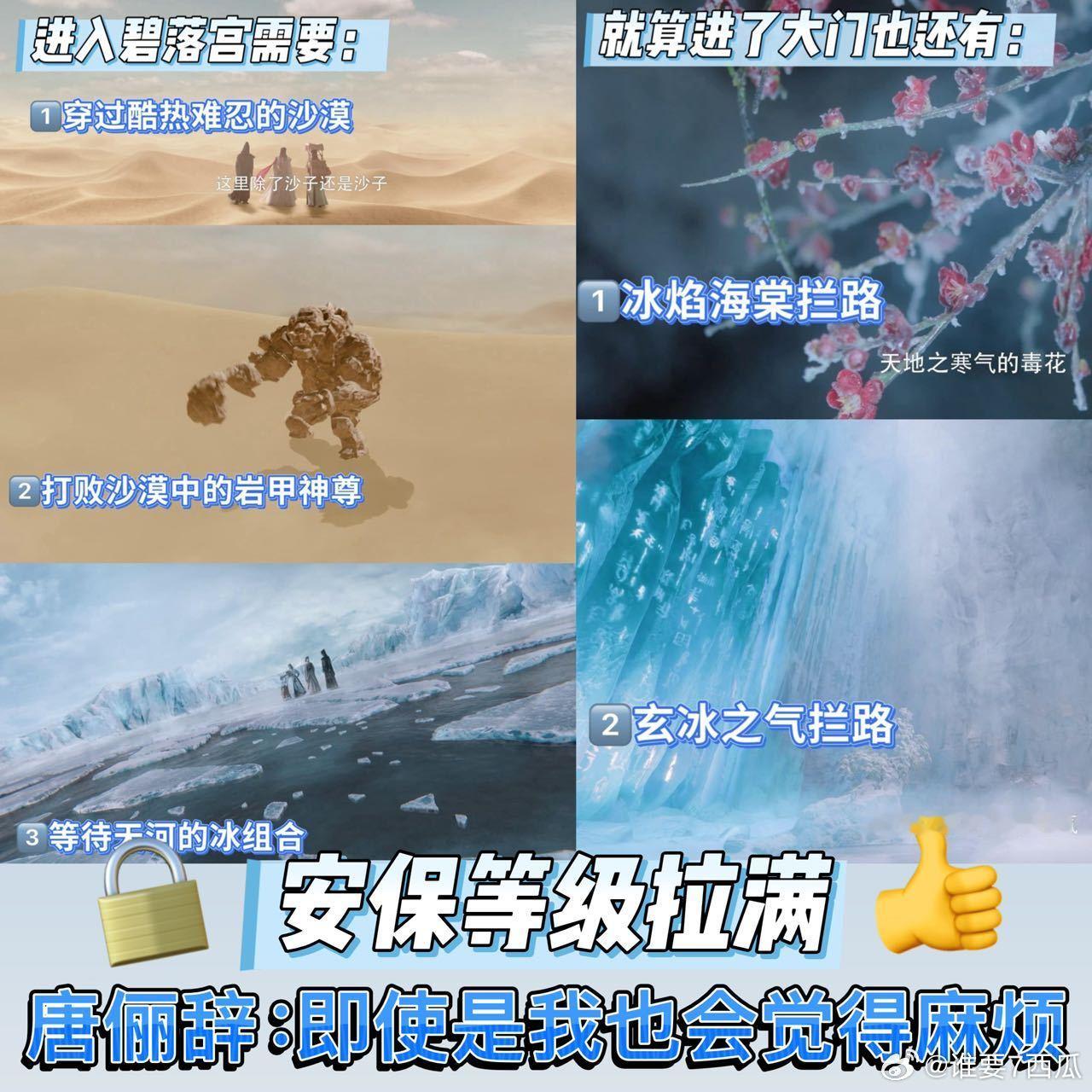 演了一集过了九九八十一难 这一集无缝衔接的剧情让我差点喘不过气来!从冰雪到沙漠,唐俪辞仿佛一人背负整个江湖,强大又帅气,让人瞬间爱上她!