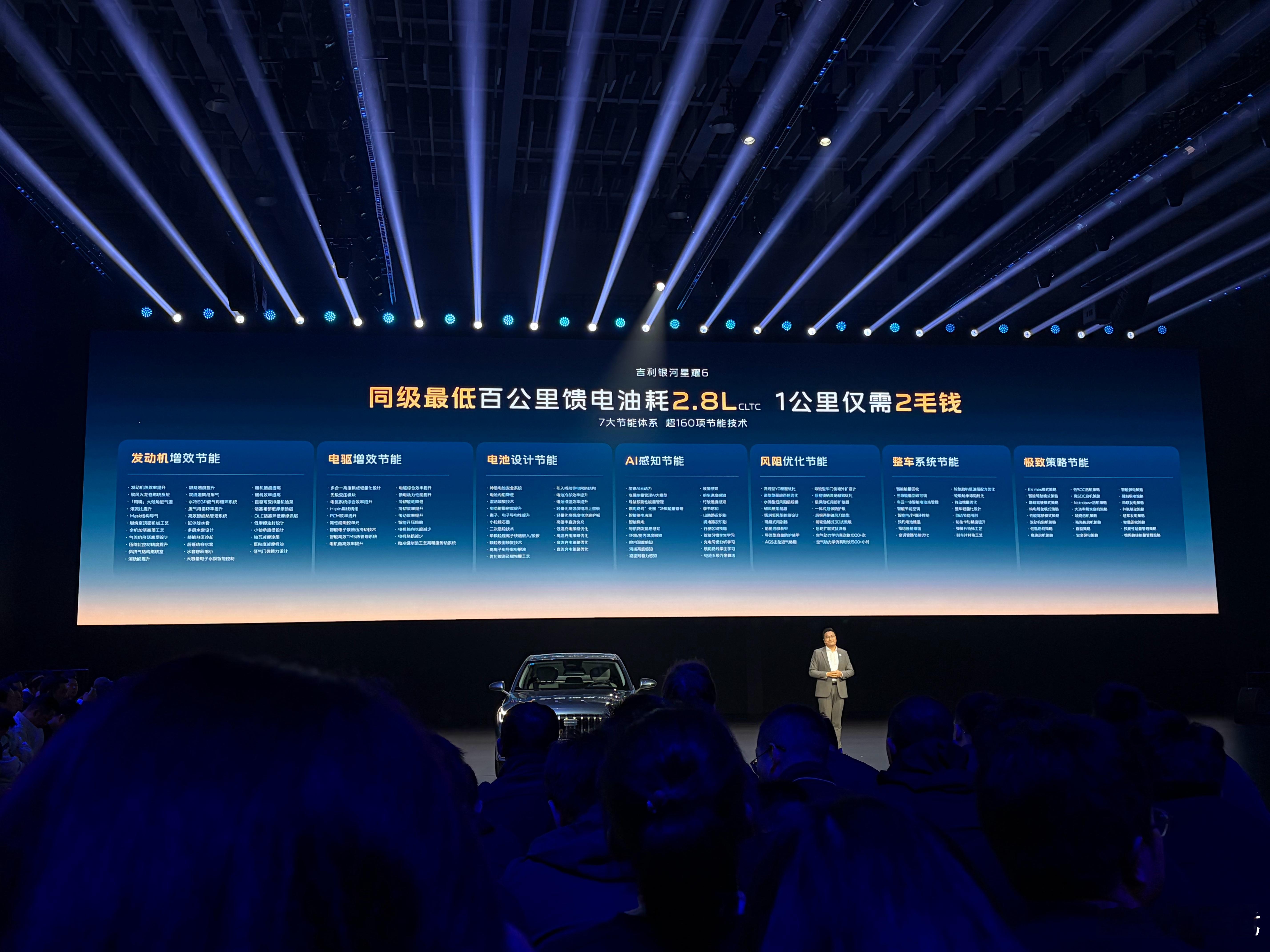 吉利银河星耀6十分节能,同级最低的百公里馈电油耗2.8L,甚至在曼谷实测只有2.6L。整车1700公里+超长续航,2L闯全球[笑而不语]