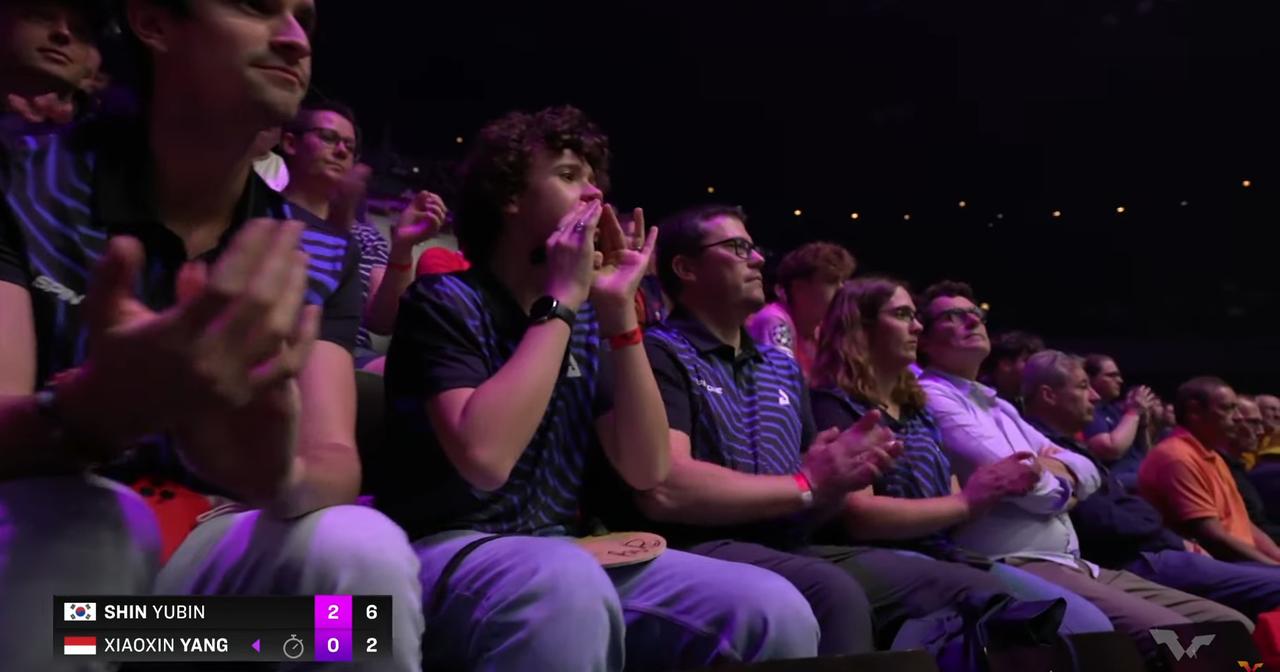 我算看明白了,这群法国观众都是颜值控, 今天申裕斌和杨晓欣的比赛, 申裕斌只要赢球, 那边嗷嗷的鼓掌, 虽然申裕斌大概率3:0赢了, 但是杨晓欣打的也不错。 昨天蒯曼和金娜英也是这样, 仿佛到了韩国主场, 让蒯曼很无奈。 问题来了, 金娜英和申裕斌谁更漂亮? 我觉得申裕斌更阳光。