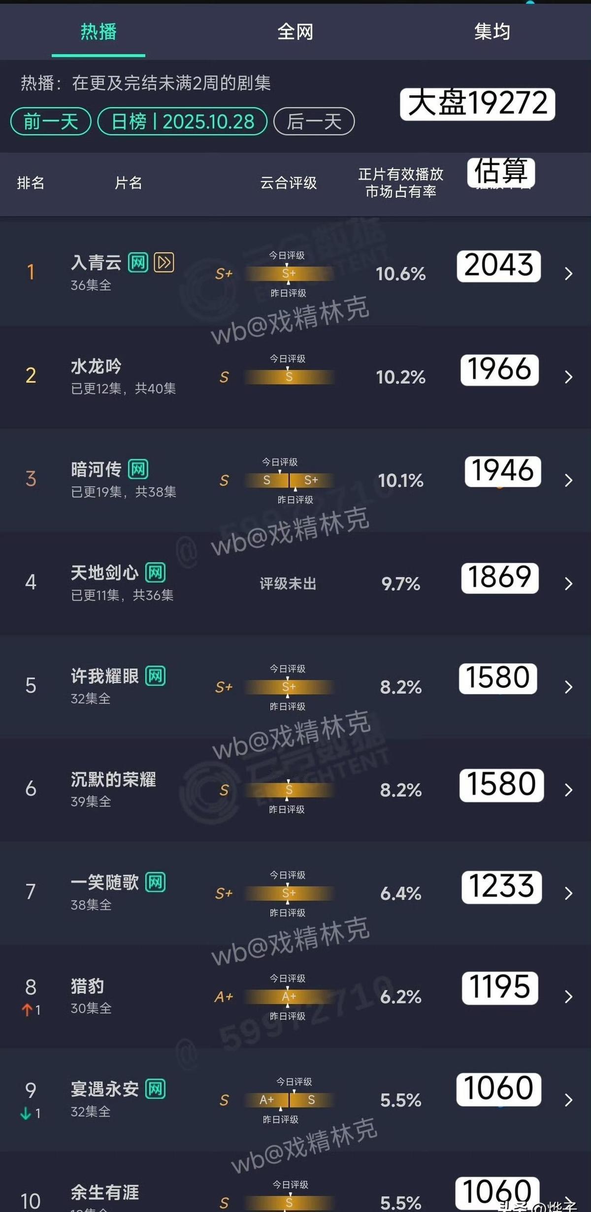 罗云熙的《水龙吟》炸了,一天近两千万播放,微博话题破10亿,抖音刷爆首页。 龚俊和成毅紧咬不放,差不了多少,但就是差了那么一口气。 三部剧全在1800万以上,大男主的饭碗,还没凉。 粉丝拼数据,观众看剧情,谁真扛得住,时间说了算。 不是谁流量高谁赢,是谁能让人追着不放,才算真本事。 这轮比的不是演技,是耐力。 谁先松口,谁就出局。