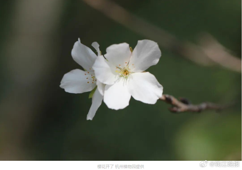柳浪闻莺公园内,樱花同样绽放枝头,一枝上四五朵别样俏丽。滨江樱花跑道上,网友镜头下的花朵近景让人恍惚,仿佛下一秒樱花雨就要落下。