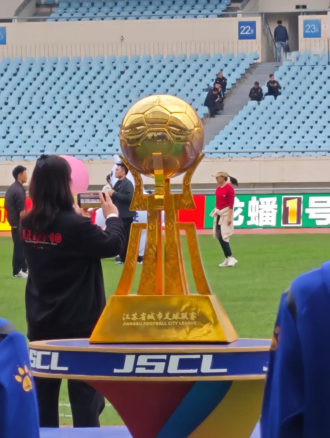 江苏省城市联赛冠军奖杯公布! 这难道是问鼎天下的意思?下面看起来像一个鼎,上面是一个足球,设计上还是比较有意思的。 这场活动开始举办的时候,大家谁都不知道冠军奖杯长什么样。开始的时候关注度也没有这么高,甚至还组织起学校的学生去观看。 从一个友谊赛打到全国关注度最高的超级联赛,江苏城市足球联赛确实带来了不一样的感觉。 各位是怎么看的?欢迎评论区留言。