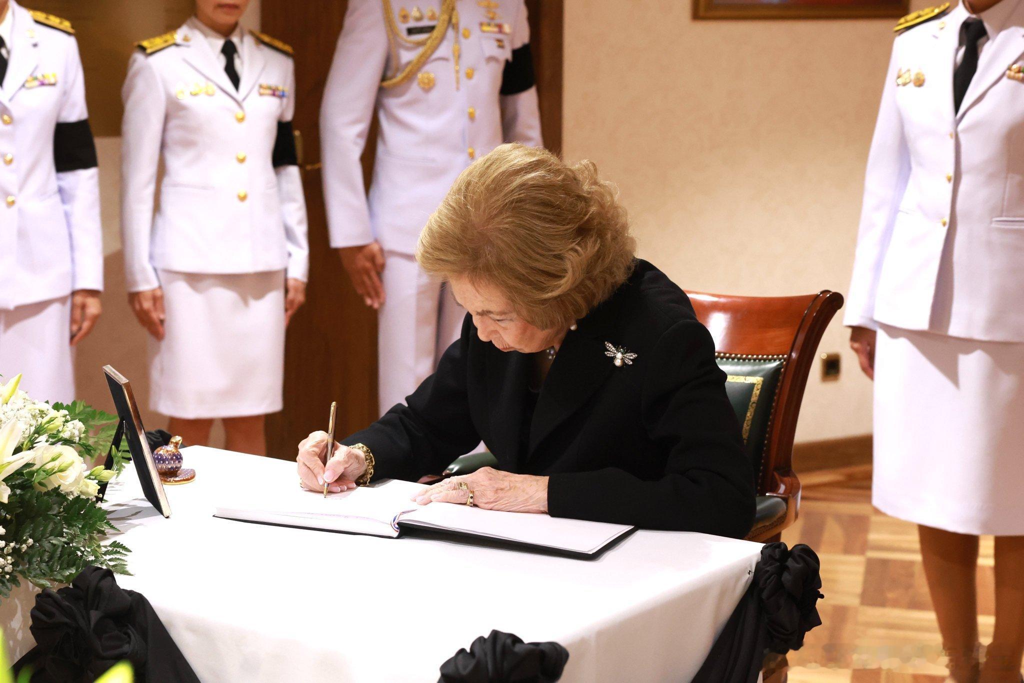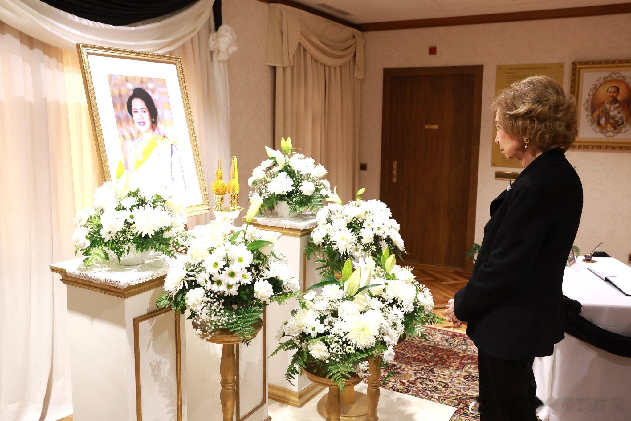 新闻 2025.10.30 西班牙王后索菲亚前往泰国驻西班牙大使馆吊唁已故泰国王后诗丽吉,多年同事建立起来的深厚友谊。