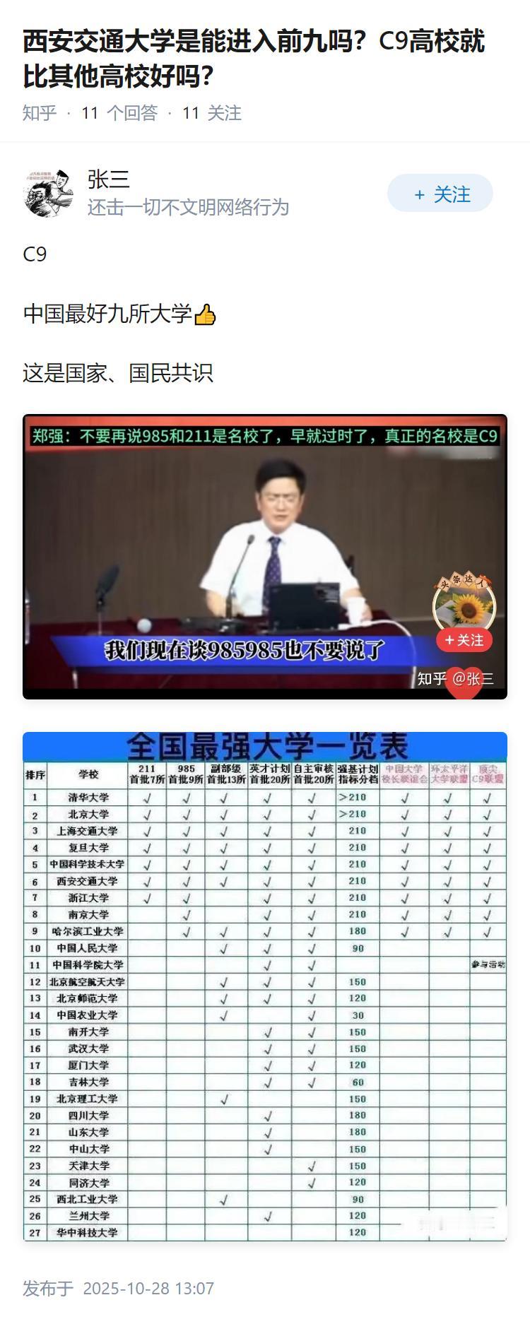 西安交通大学是能进入前九吗?C9高校就比其他高校好吗?