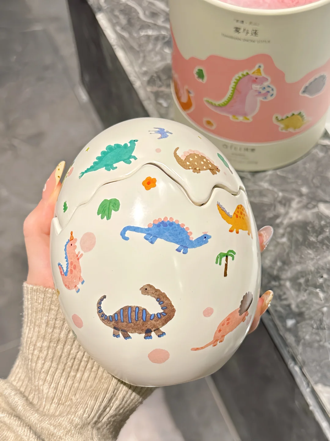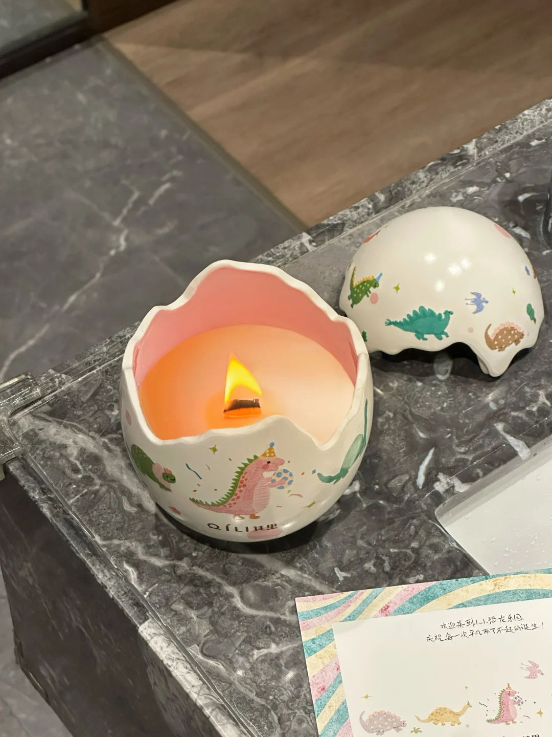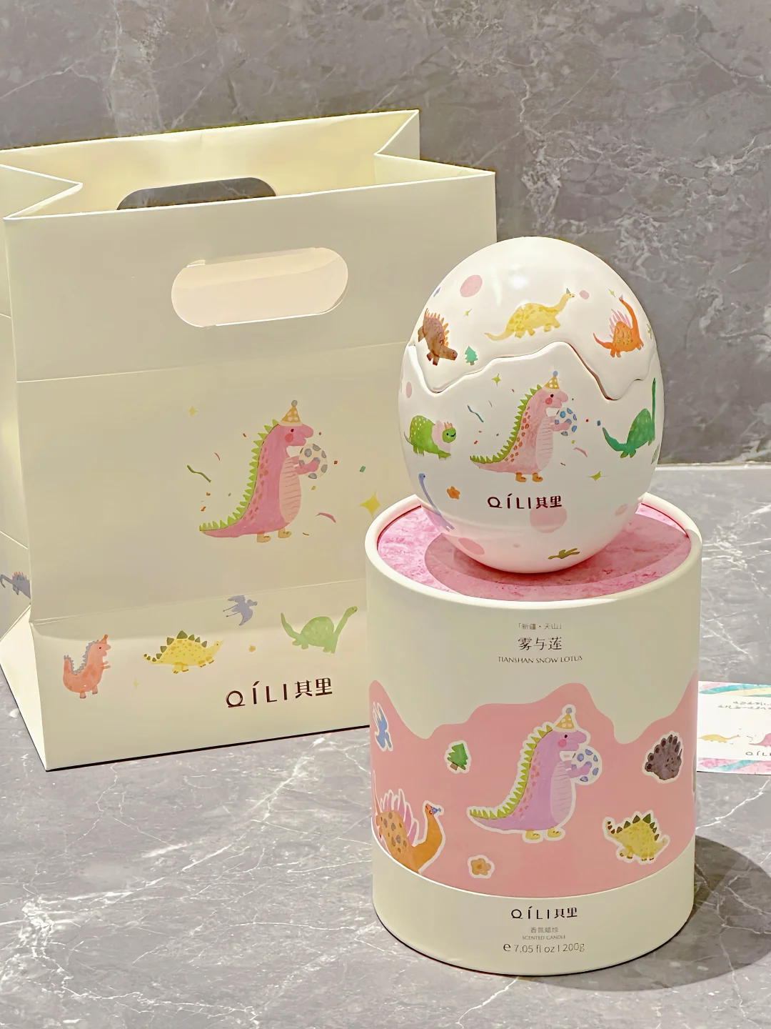 恐龙蛋壳造型➕小恐龙插画也太可爱了呜呜🥹 简直是天选生日礼物🎂🎁 一起庆祝一切了不起的「蛋」生🎉 一只戴着生日帽的小恐龙怀抱小小恐龙蛋 周围是从四面八方赶来庆祝的小伙伴 而且上面每一只恐龙🦕图案都是不一样的! 打开蛋壳是一个香氛蜡烛🕯️ 香味的名字叫「雾与莲」 点燃是不甜腻的花香调 雪莲的幽香和雪松的清冷恰到好处˚₊☃︎❄︎ 温柔又清冷的自然气息弥漫整个屋子🏠 看着摇曳的烛光,听着蜡烛时木芯噼里啪啦的声音,也泰治愈啦~