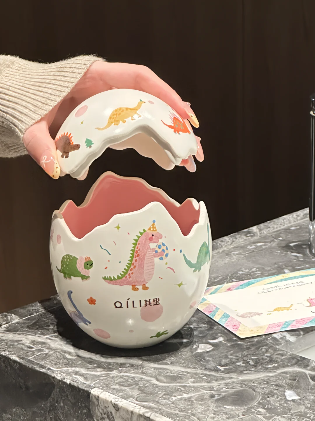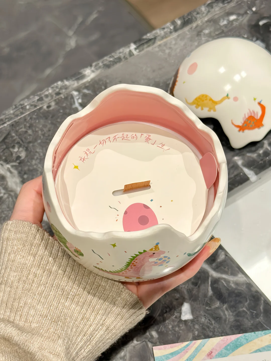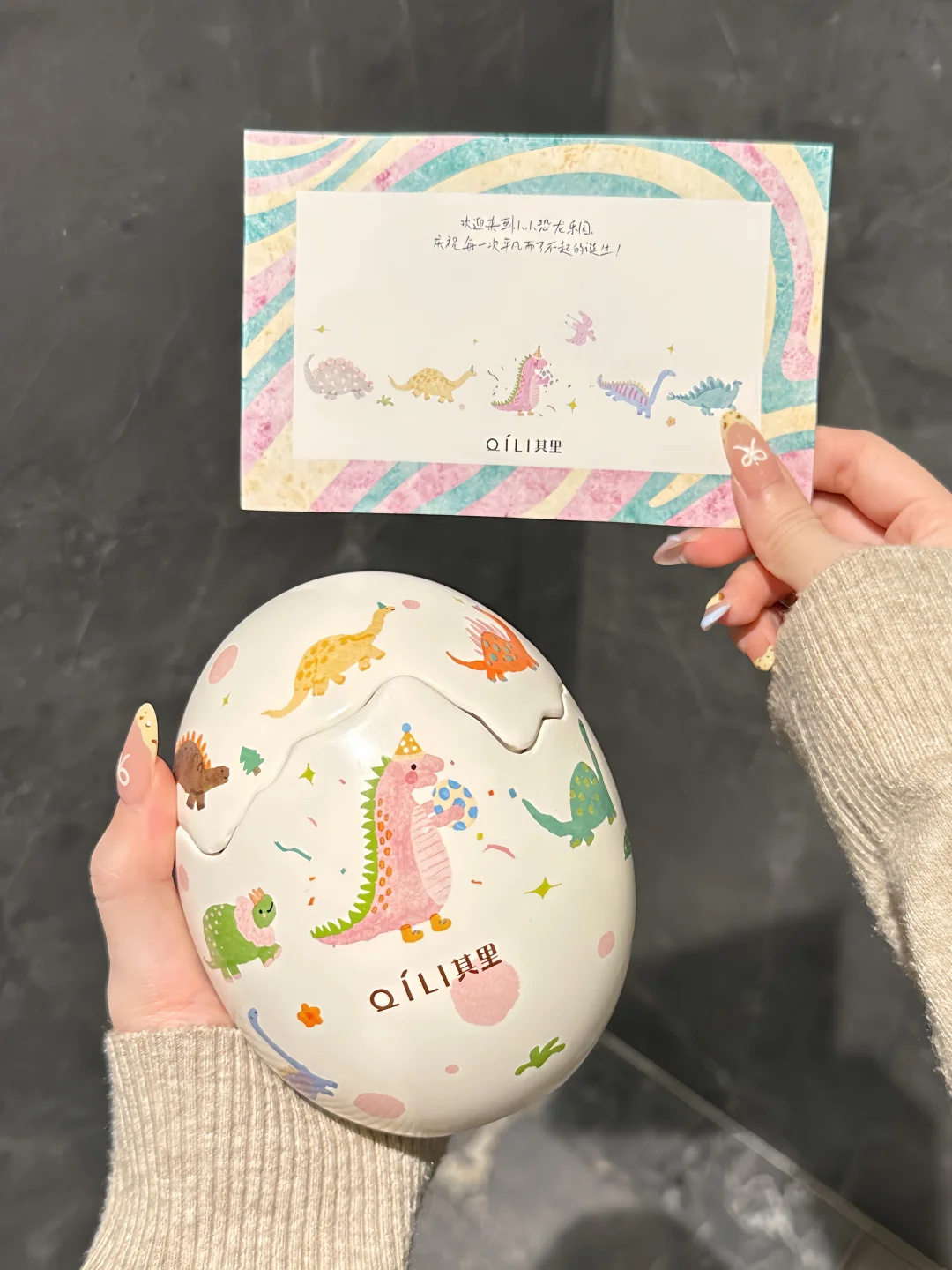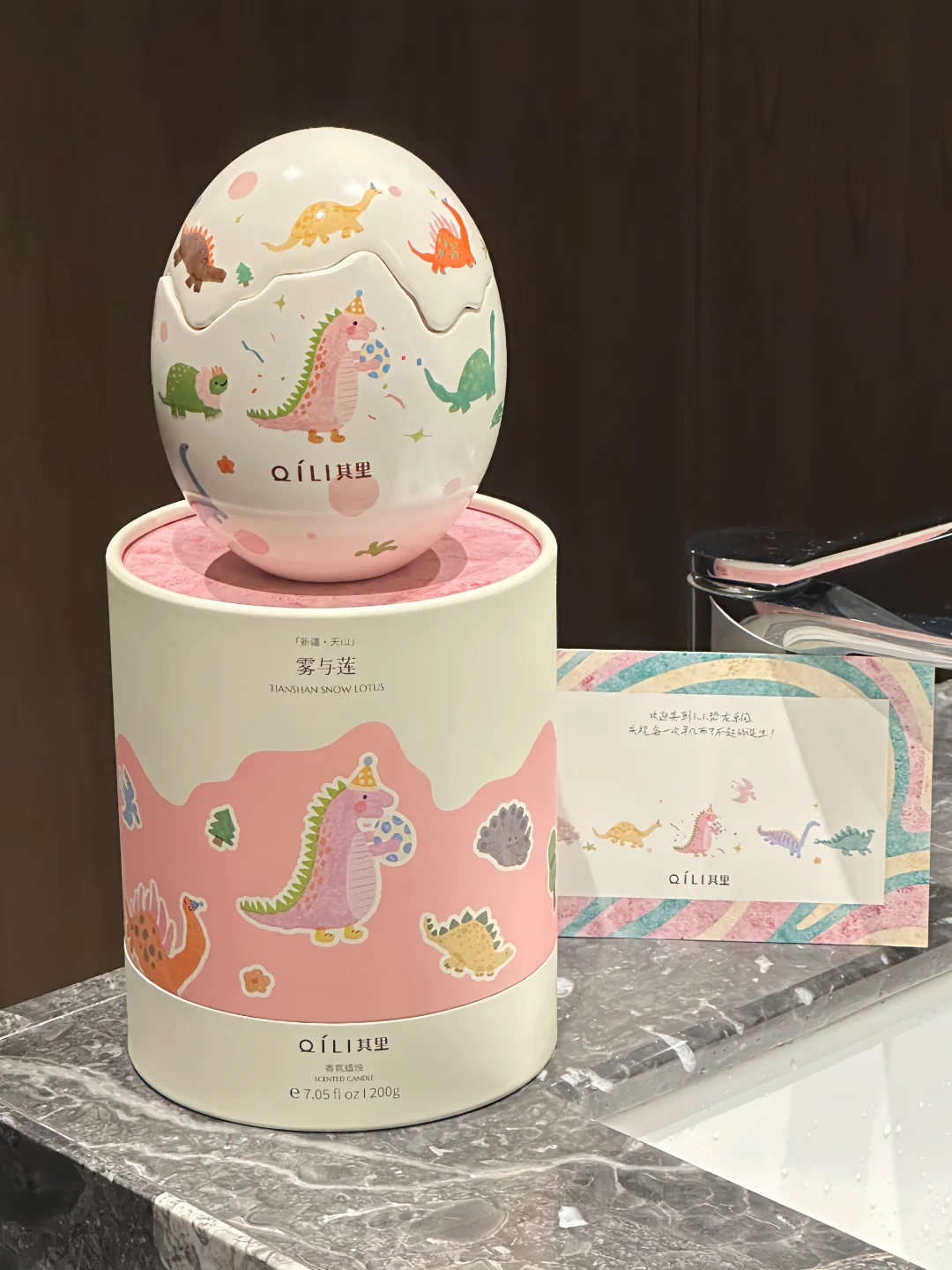 恐龙蛋壳造型➕小恐龙插画也太可爱了呜呜🥹 简直是天选生日礼物🎂🎁 一起庆祝一切了不起的「蛋」生🎉 一只戴着生日帽的小恐龙怀抱小小恐龙蛋 周围是从四面八方赶来庆祝的小伙伴 而且上面每一只恐龙🦕图案都是不一样的! 打开蛋壳是一个香氛蜡烛🕯️ 香味的名字叫「雾与莲」 点燃是不甜腻的花香调 雪莲的幽香和雪松的清冷恰到好处˚₊☃︎❄︎ 温柔又清冷的自然气息弥漫整个屋子🏠 看着摇曳的烛光,听着蜡烛时木芯噼里啪啦的声音,也泰治愈啦~