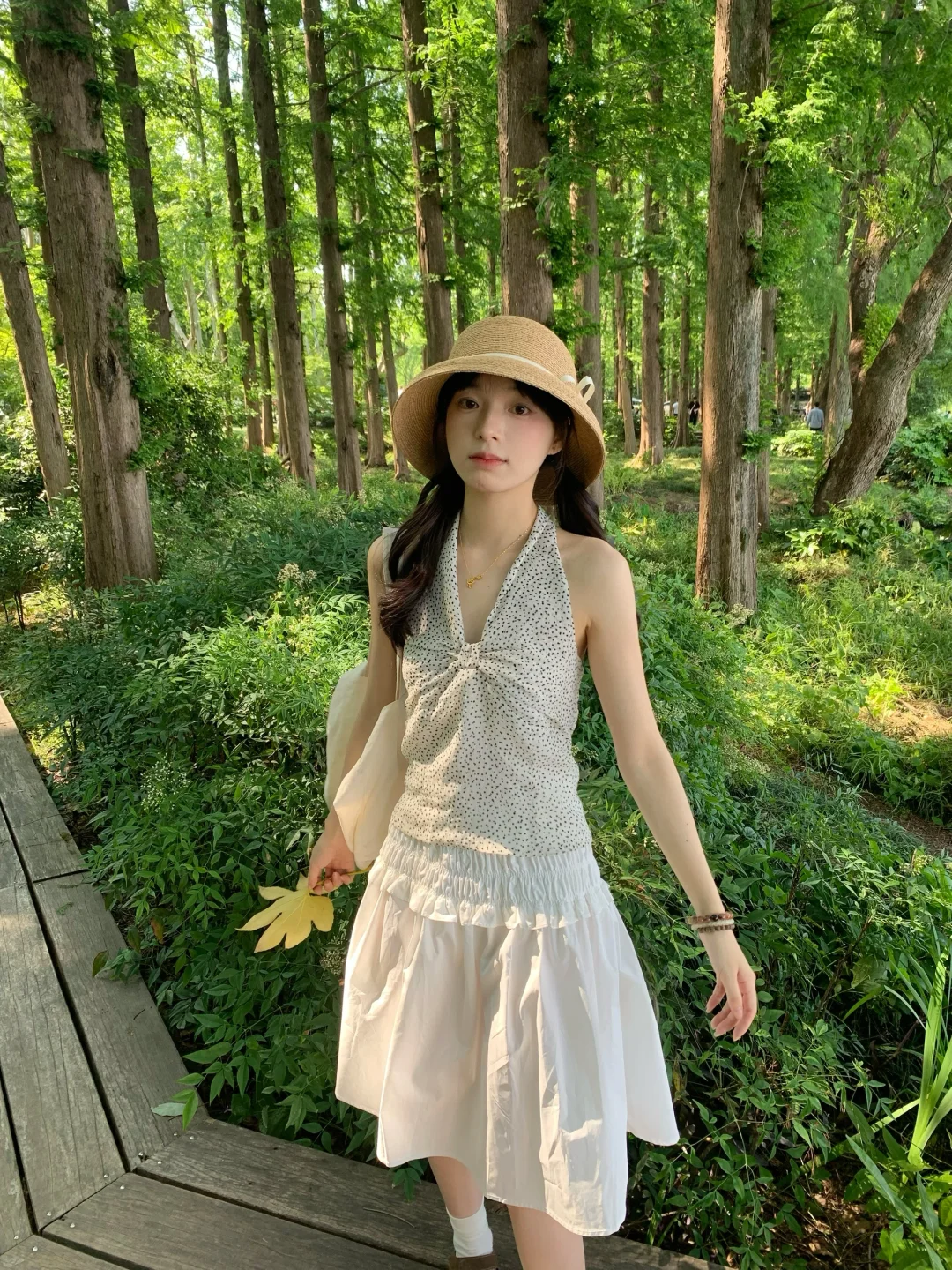 夏日清新穿搭,条纹背心+高腰短裤,轻松自在,元气满满!🌞👗💃