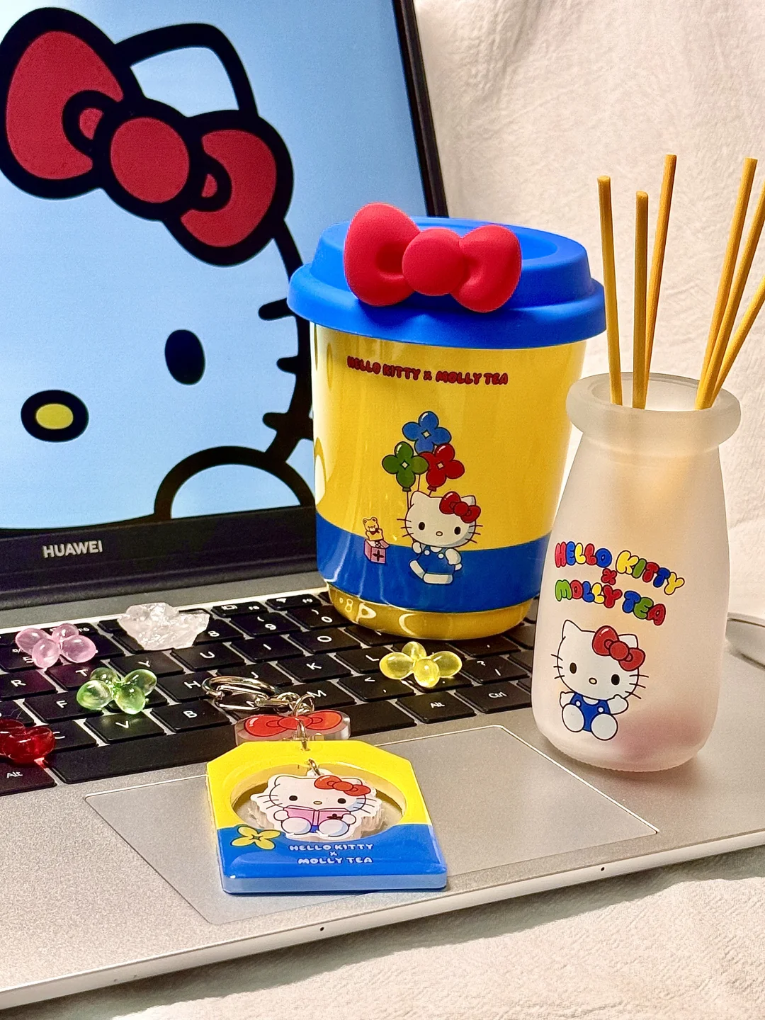 啊啊啊终于等到了! 一整套直接拿下......(什么实力不多说了吧💪) 不得不说HelloKitty联名奶瓶液体无火香薰 真的好乖好可爱,摆在桌上看着就开心[哇R][哇R] 还有随行杯和御守挂件~忍不住拍了好多张 这个夏天喝水频率都要高了≽^• ˕ • ྀི≼ ੭