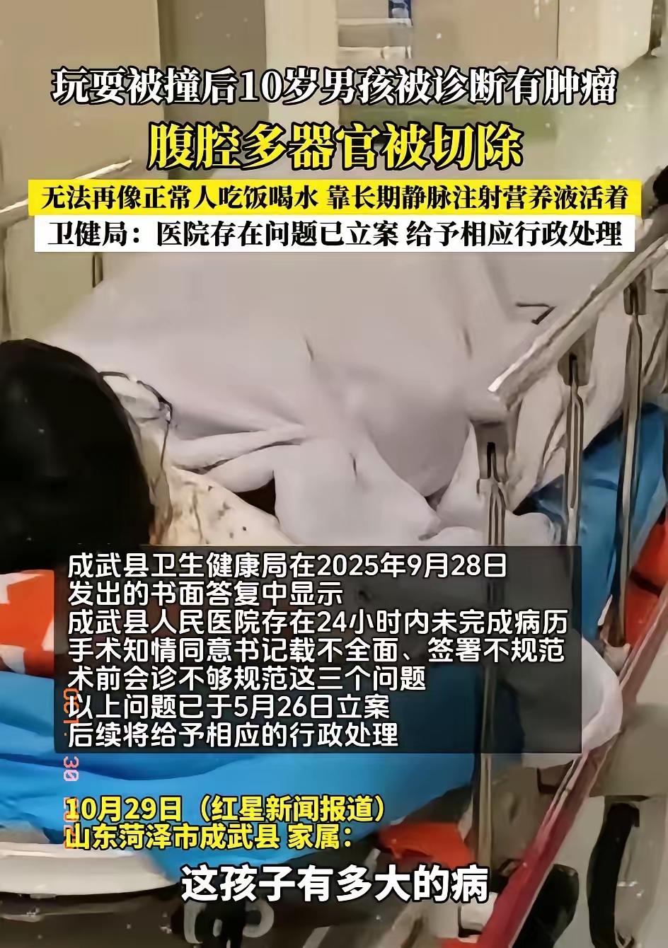 20万赔得了器官,赔不了一个孩子的人生!山东那个10岁娃的事儿,想起来就心揪。不过比切了6个器官更可怕的,是基层医疗里藏着的“决策陷阱”。 医生一句“微创小问题”,家长就签了字,没想到14小时里被迫签了4次,消化系统几乎全没了。卫健局都查出来医院病历没及时写、术前会诊不规范,司法鉴定也说医院有过错,可最后还是“同等责任”。 这哪是“没多跑几家医院”的问题?明明是医生把“微创”当定心丸,却藏起了真实风险;明明是家属在手术室外的绝境里,根本没真正的选择权。所谓的“知情同意”,在紧急关头成了被动签字。 别再只说“看病要多问”了,关键是得让医院把风险说清楚、把选择权还给家属。你说,要是换成你,手术中医生催着签字说“不签就不配合”,你敢不签吗?