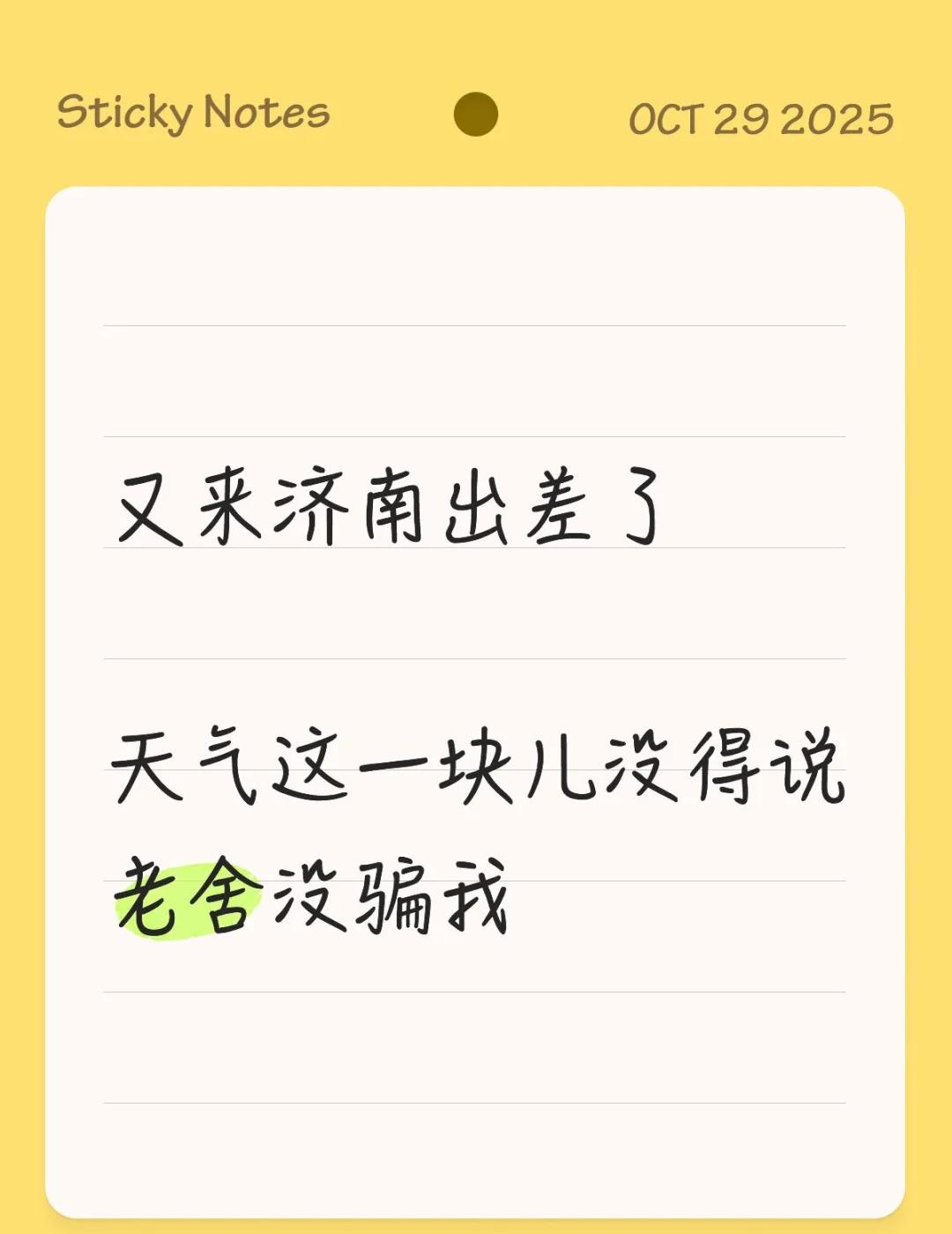 济南的冬天 在经历了北京连续的降温和大风,我穿着北京的市服来到了济南。本来以为同为北方的城市,也是一样的冷风刮脸,没想到,温温的天气,半晴的天空,中午穿一件卫衣刚好。 没有了在冷风中着急赶路的心态和情绪,感觉时间都变慢了,变得柔和了。 我打开手机搜《济南的冬天》,小的时候感受不到文字的力量(我想济南土生土长的孩子也感受不到),生命就是经历了岁月的打磨后,才能真正有所感受。 ———————————————— “对于一个在北平住惯的人,像我,冬天要是不刮大风,便觉得是奇迹;济南的冬天是没有风声的。对于一个刚由伦敦回来的人,像我,冬天要能看得见日光,便觉得是怪事;济南的冬天是晌晴的。自然,在热带的地方,日光是永远那么毒,响亮的天气反有点儿叫人害怕。可是,在北中国的冬天,而能有温晴的天气,济南真得算个宝地。” 济南