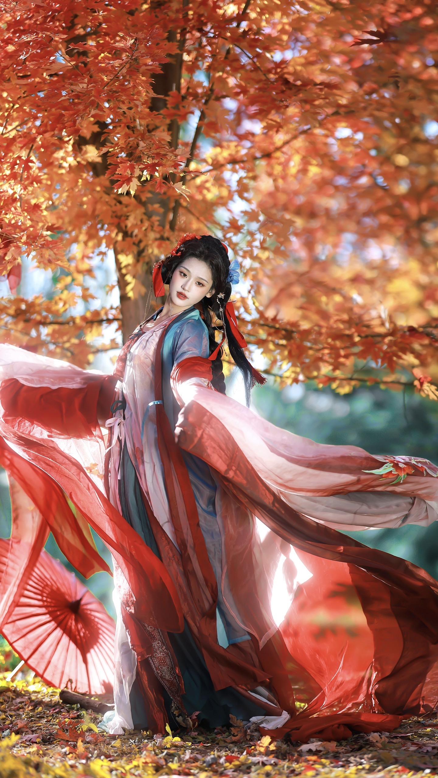 我言秋日胜春朝🍂。可爱的秋天! 🧚♀️: 💄: 👗:观山月
