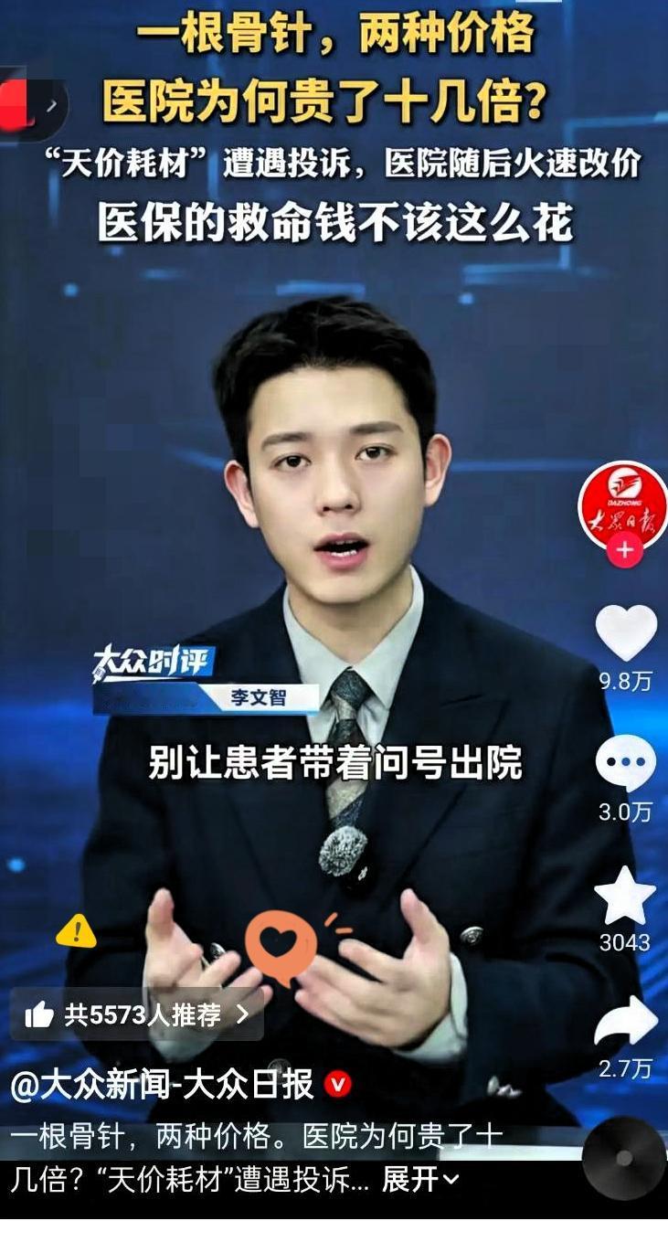 黄先生骨折去就医,医院483元的针网上同款才42元,贵了足足11倍!更讽刺的是,网友曝光后医院立马调价到350元,这波“知错就改”反而坐实了定价猫腻。 有网友吐槽同款医保药医院比网上贵几百,耗材天价不是个例,问题大概率出在采购环节。医保报销看似省了钱,可原价虚高的“水分”,最终还是由患者和医保基金买单。 老百姓看病是为了救命,不是被当成“摇钱树”。医疗定价透明化不能只喊口号,该查查采购链条里的灰色地带了,别让患者花冤枉钱! 你遇到过医院耗材或药品价格离谱的情况吗?觉得该怎么监管才有效?一次性耗材收费
