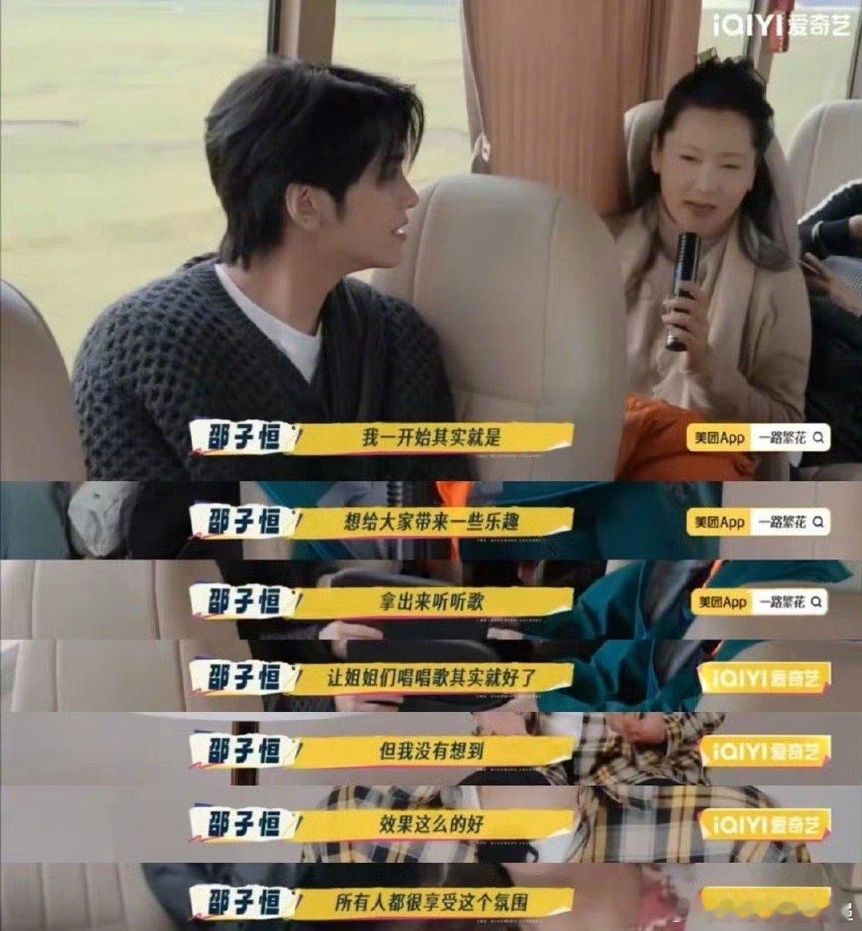 看完这3分钟都想看正片了 一路繁花这一期的车上K歌太欢乐了,邵子恒带的话筒和音响简直是氛围神器。七位嘉宾轮番开唱,歌声笑声交织在一起,像一场移动的小型演唱会,看得人忍不住跟着哼起来。