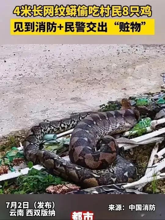 56斤巨蟒溜进工棚偷鸡,被抓时吐出两只鸡,消防员:幸好它吃撑了 🐍巨蟒深夜“加