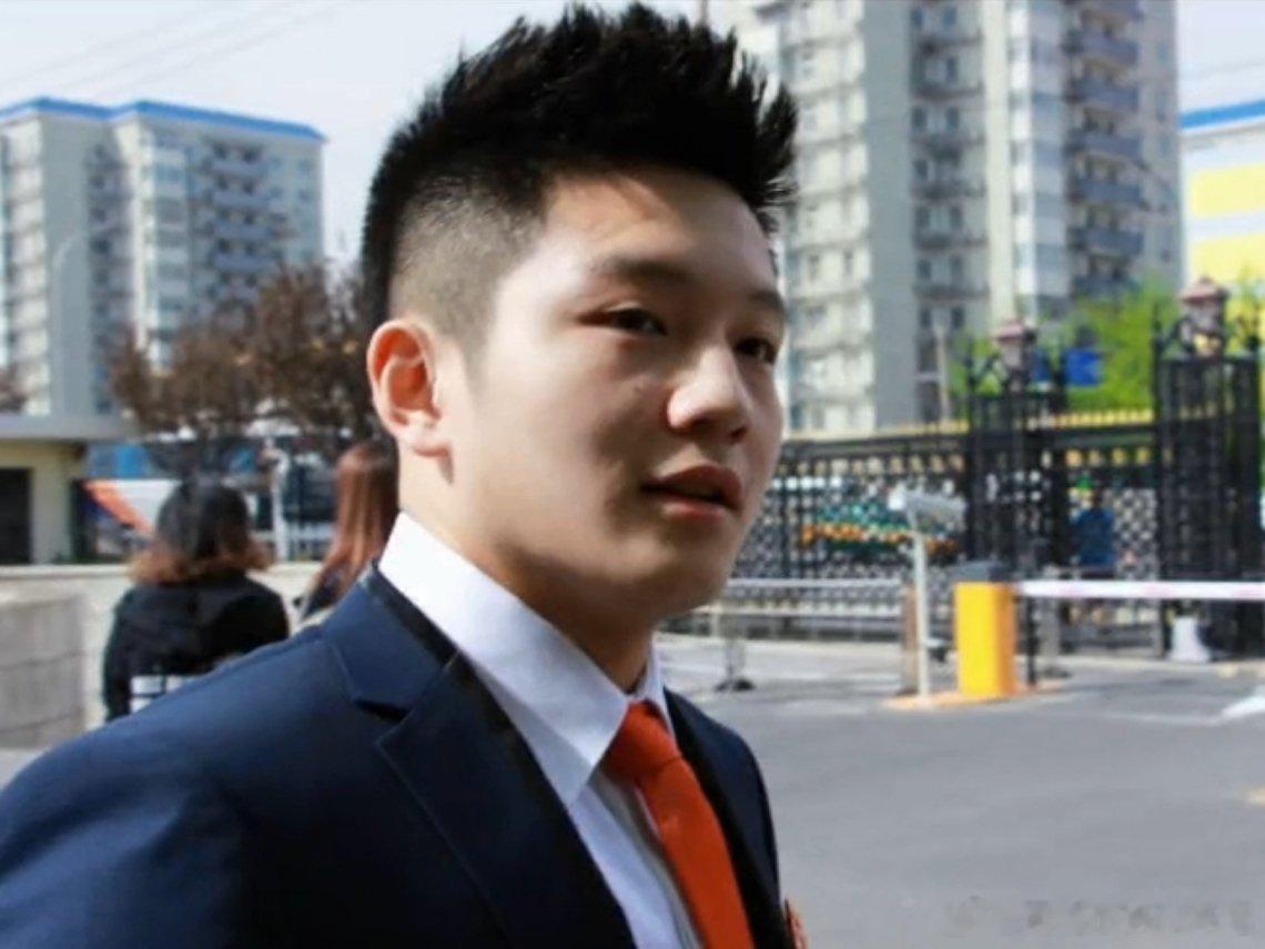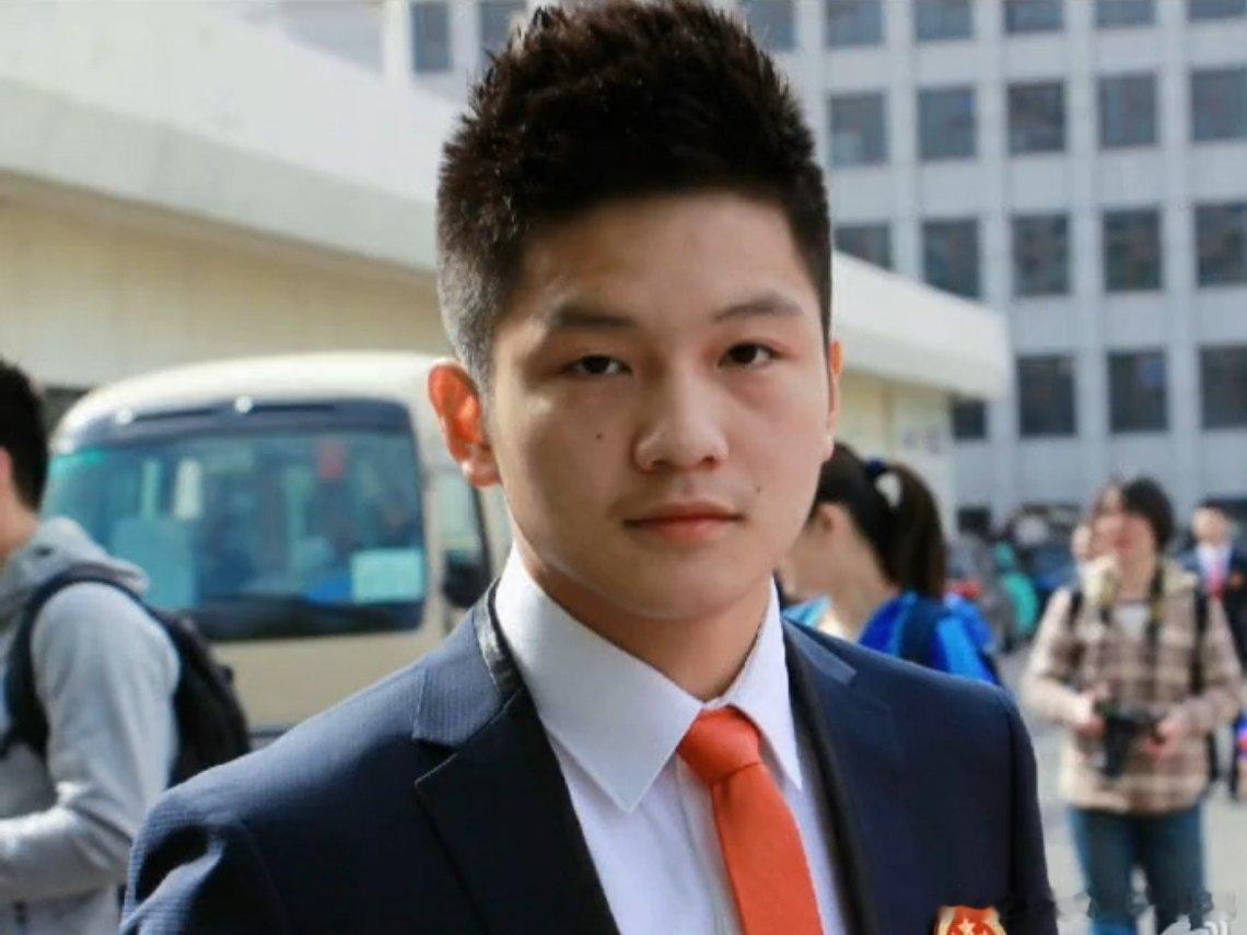 樊振东的青春期,青涩的他穿上一身帅气西装,系上红色领带,将头发梳成大人模样