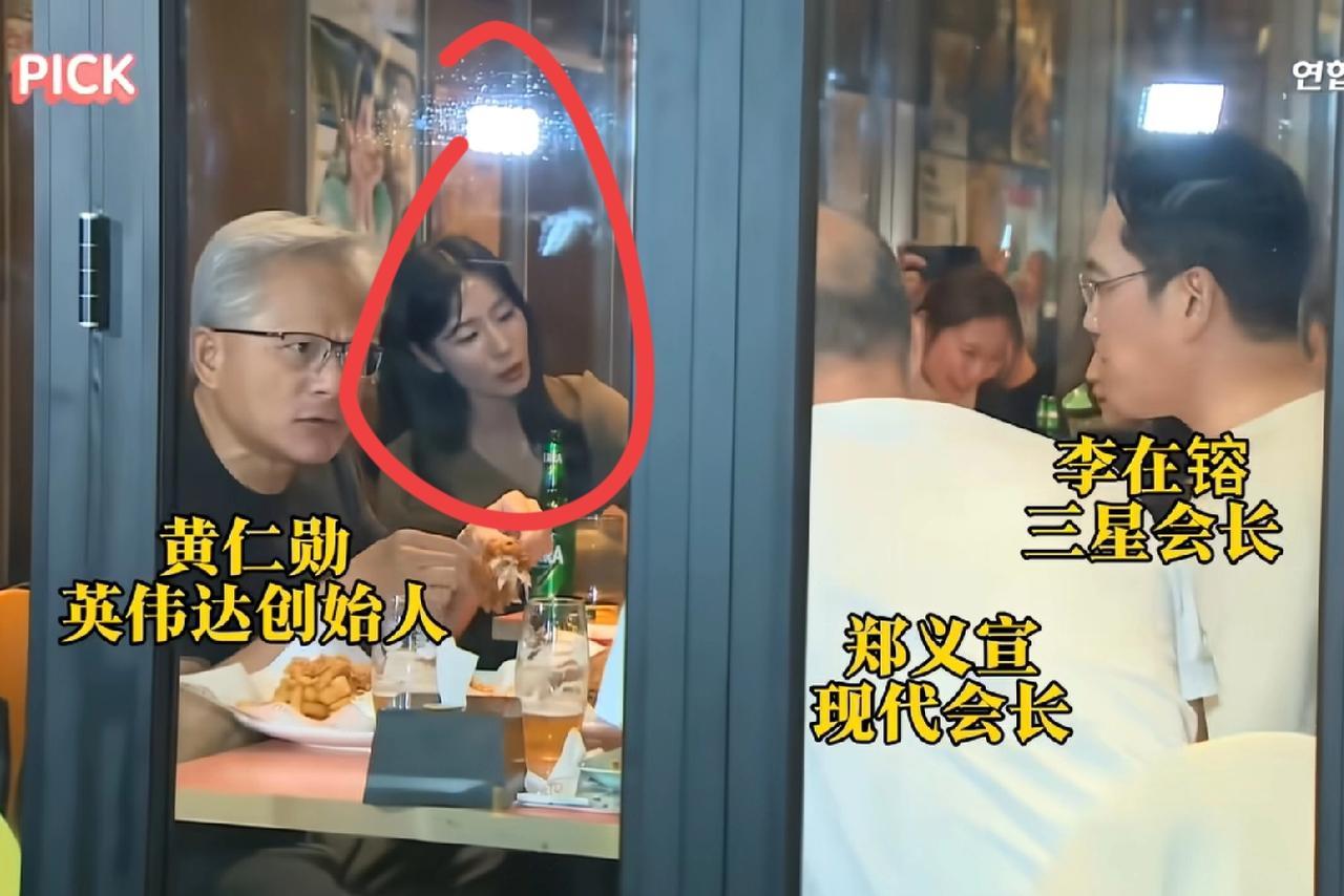 黄仁勋与三星老总李在镕、现代老总郑义宣,在首尔街头炸鸡店聚餐,陪酒美女小姐姐们,很亮眼!青春靓丽像女模,两位老总安排的?韩国财阀的眼光,果然名不虚传!三人吃的很简单,食量不大,不过黄仁勋吃得很投入,三人短袖长袖T恤,很接地气,特别郑义宣,还秃顶,不知道的还以为,哪个部门老科长,工地包工头呢!