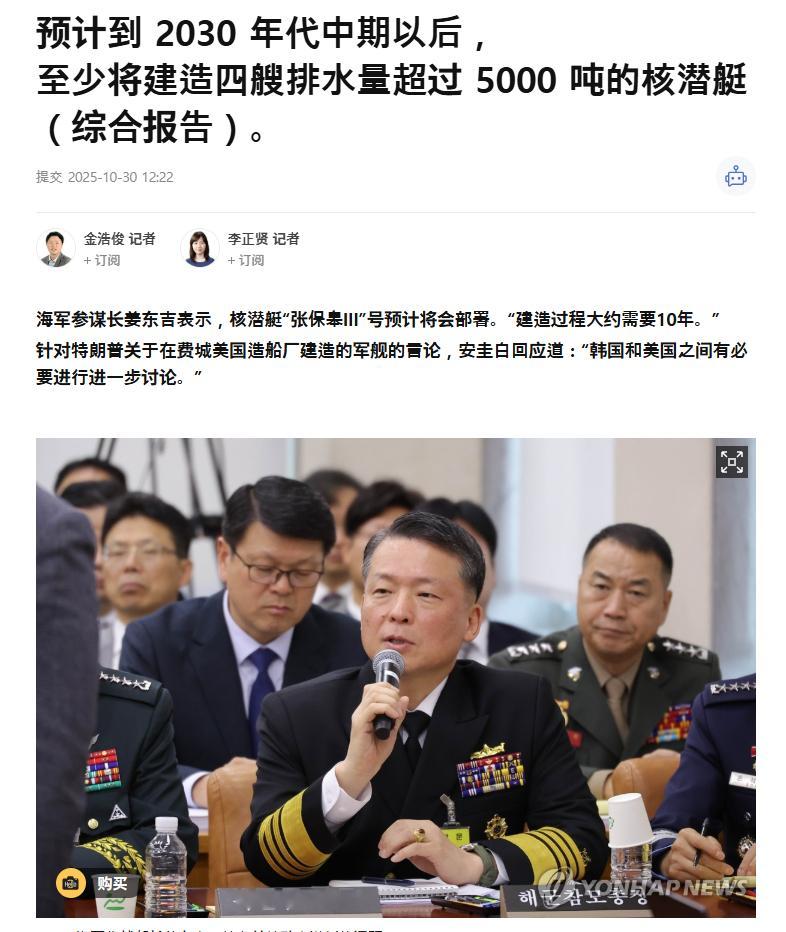 韩国国防部长在回答关于核潜艇建造规模的问题时表示: