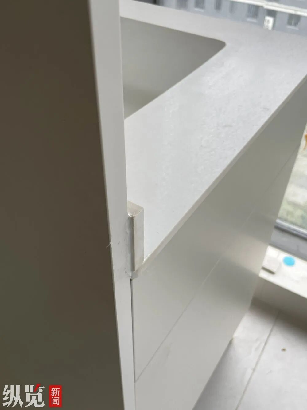 阿文说,房子的问题主要有,主卧门不仅颜色不搭,还是纸板门;阳台玻璃被柜子挡住,无法完全打开;瓷砖不对缝,柜子柜门和内部颜色有色差等。