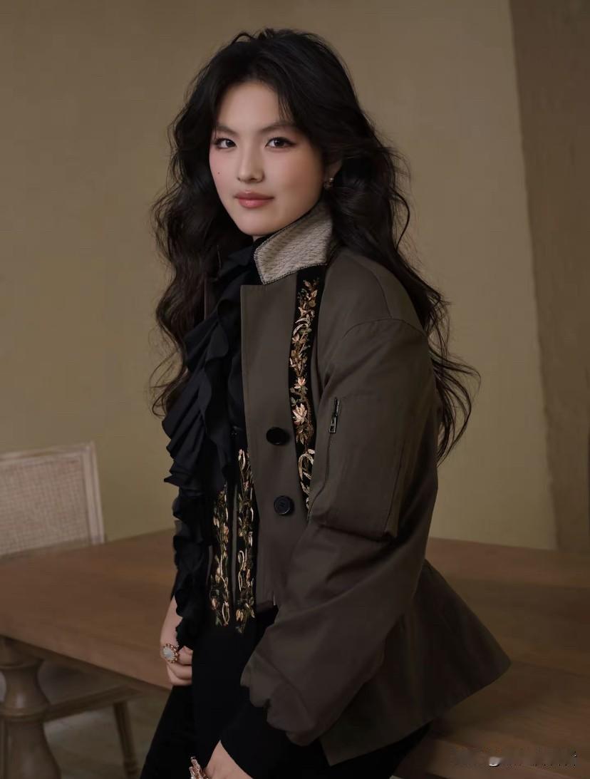 李湘删除了前几天发的自己的照片,今天她又发了一组女儿的照片,王诗龄的新片又出来了,不过第一张和第三张看起来没什么区别,这照片拍的王诗龄有一种很飒的感觉,穿的衣服也是偏暗色,衣服上的金色点缀有点民族风,大波浪的头发显得她又飒又大气,手插兜,食指各戴了一个大戒指,有点妈妈李湘的风格,总体来说还是蛮显成熟的。