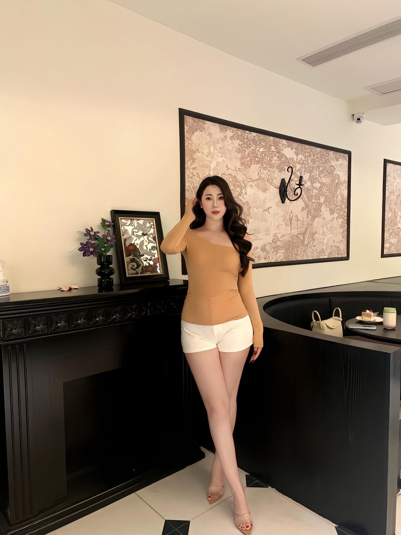 卡其色斜肩上衣搭配白色短裤,解锁法式轻优雅日常穿搭