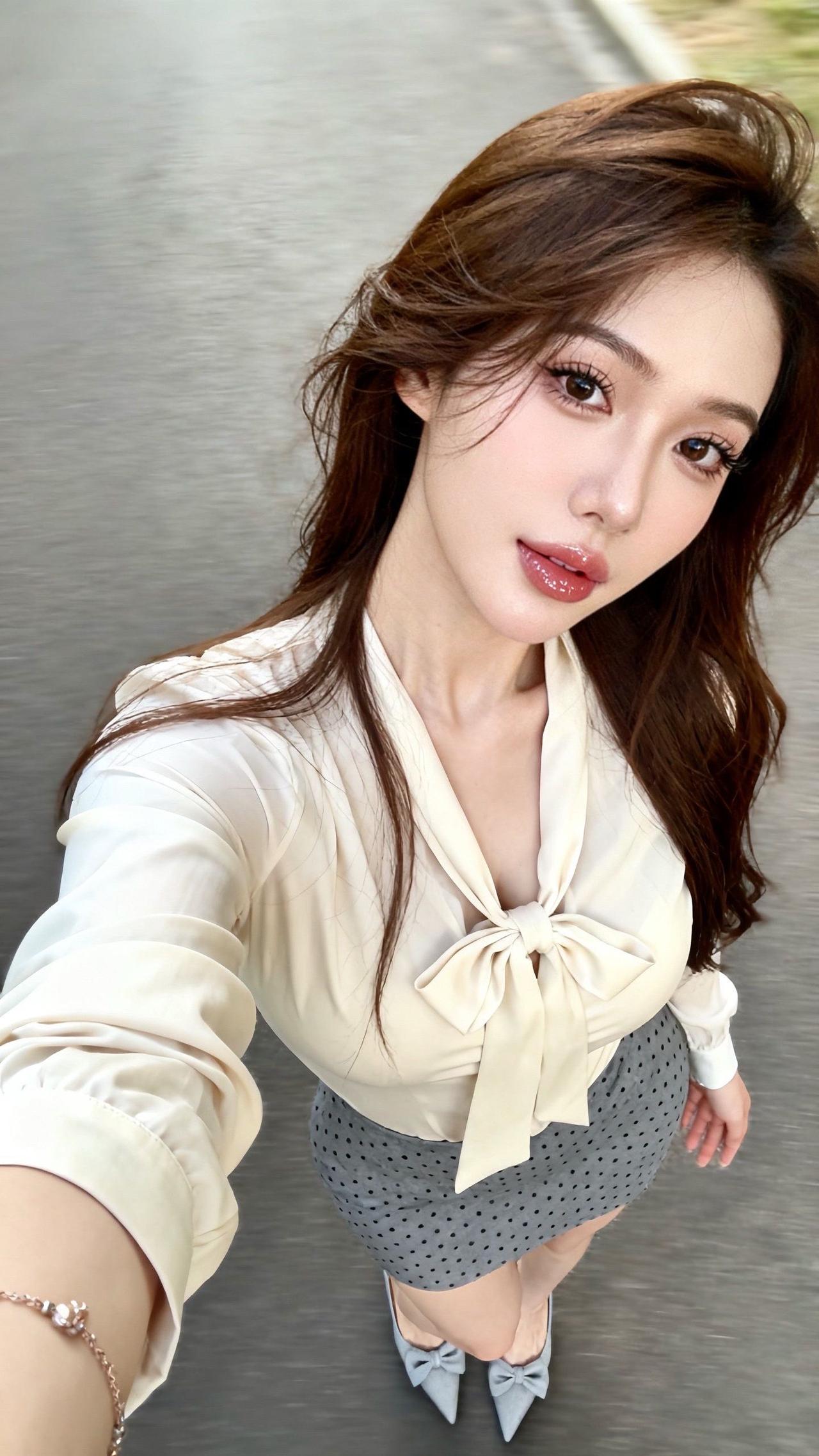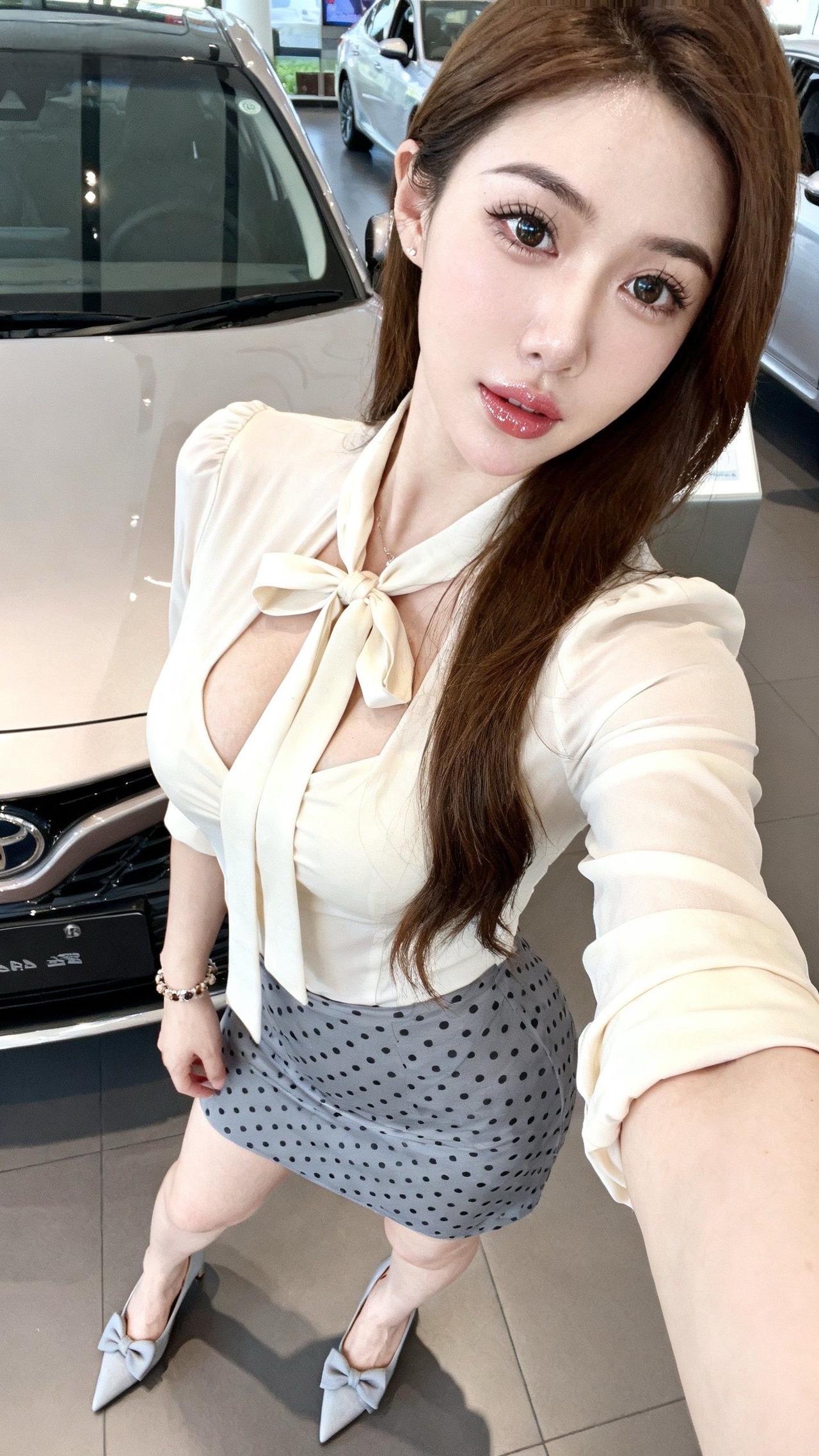 法式蝴蝶结上衣配波点短裙,这组穿搭在4S店赚足回头率