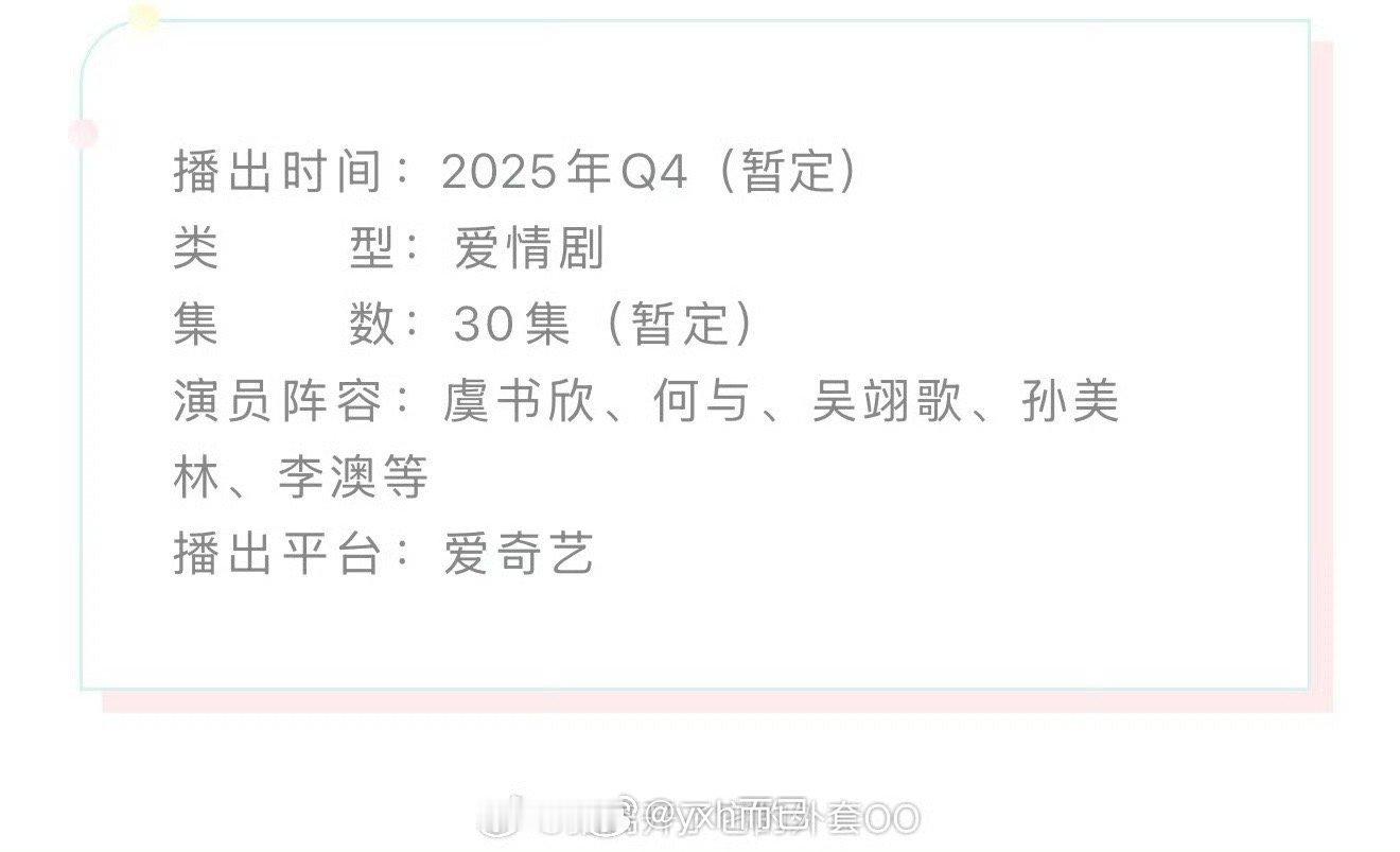 虞书欣、何与《双轨》开启播前招商,预计第四季度在爱奇艺播出