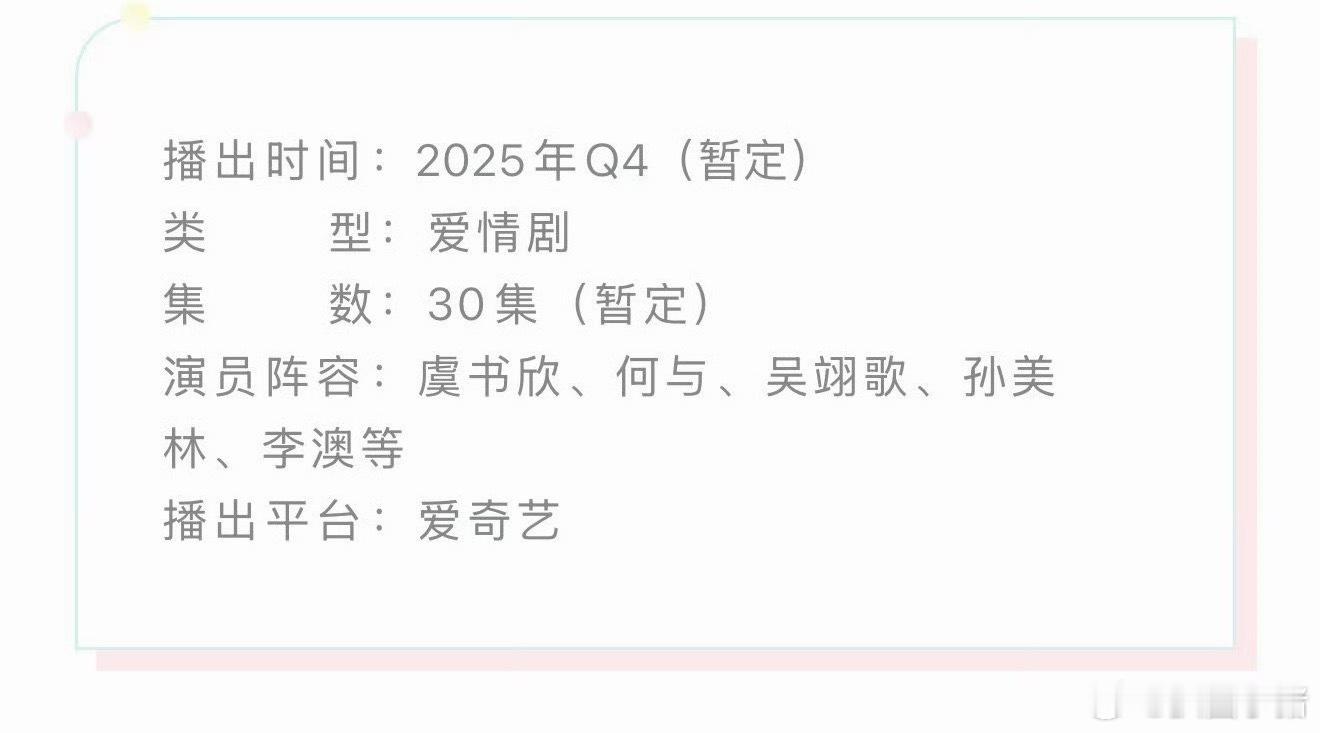 虞书欣何与《双轨》播前招商,预计第四季度播出!燥候[憧憬]