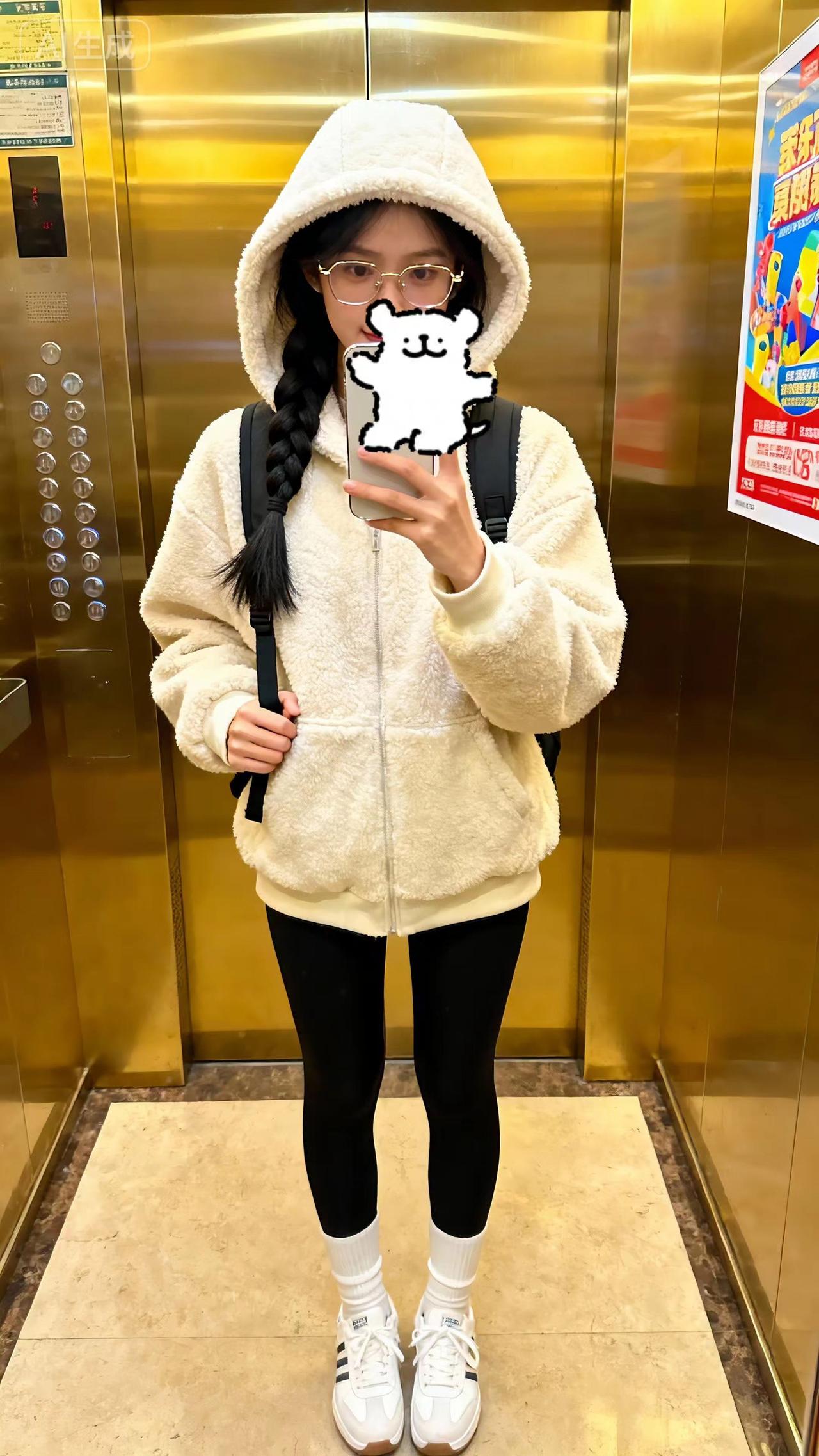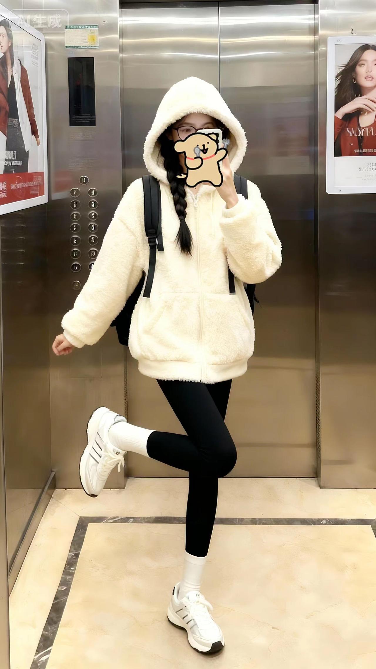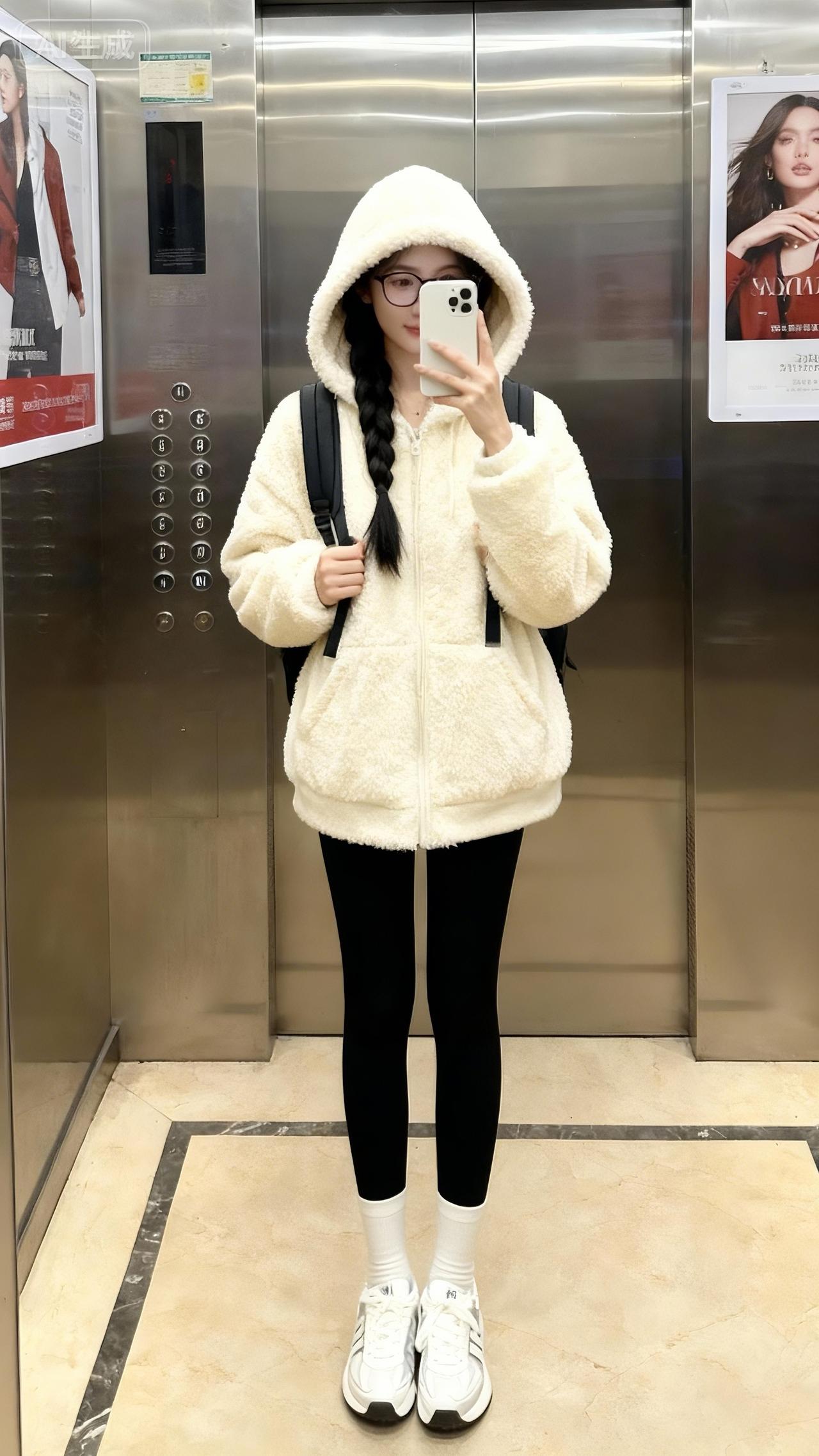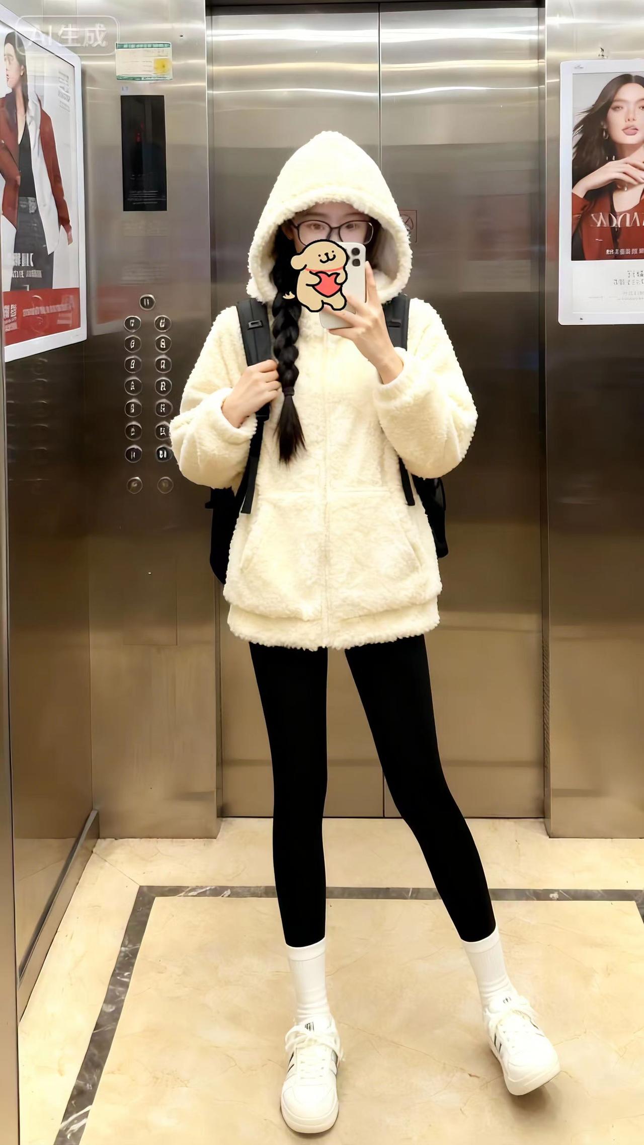 不要吐槽我。电梯拍照保暖穿搭冬季搭配光腿神器