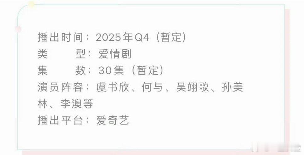 虞书欣何与《双轨》播前招商,预计第四季度播出