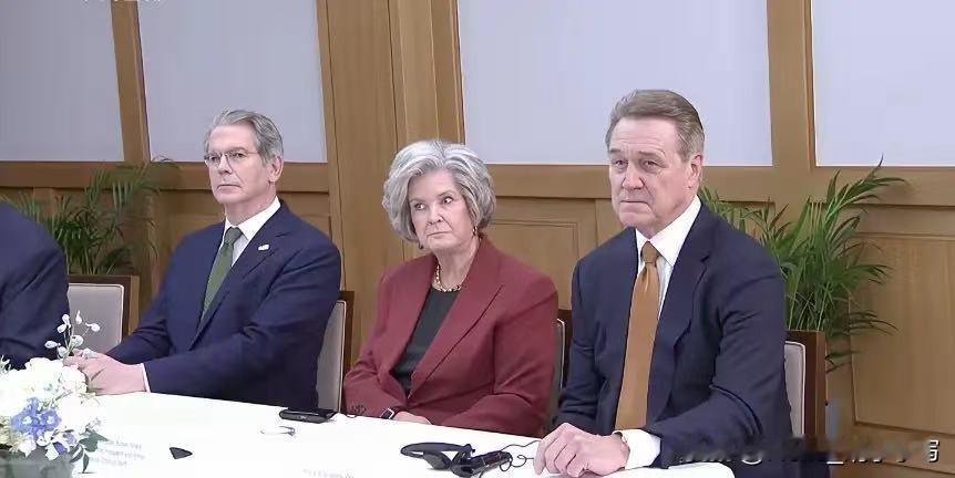 你看中间那位女士, 一脸不服又拿你没办法的表情,真是藏都藏不住! 嘴一撇,眼一飘,心里那股憋屈全写脸上了。 再看边上那两位,面相显然比她稍好些, 两国在谈判,用这眼神看对方多不好。 再看老特,这次接待头也没抬高高的去看人, 站的也板板正正的,反倒显得人家有风度, 你觉得呢?对此你怎么看?