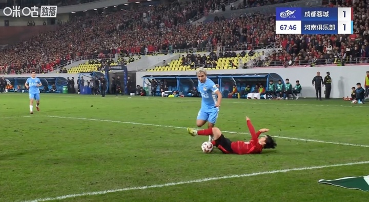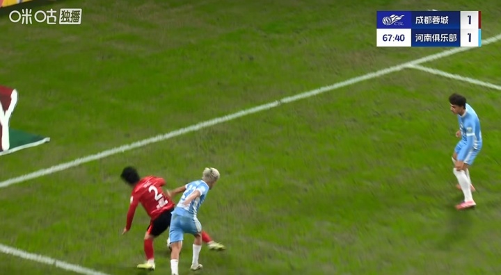 比赛第67分钟,胡荷韬突入禁区时倒地,随后蓉城球员向裁判抗议犯规,裁判未予理会。