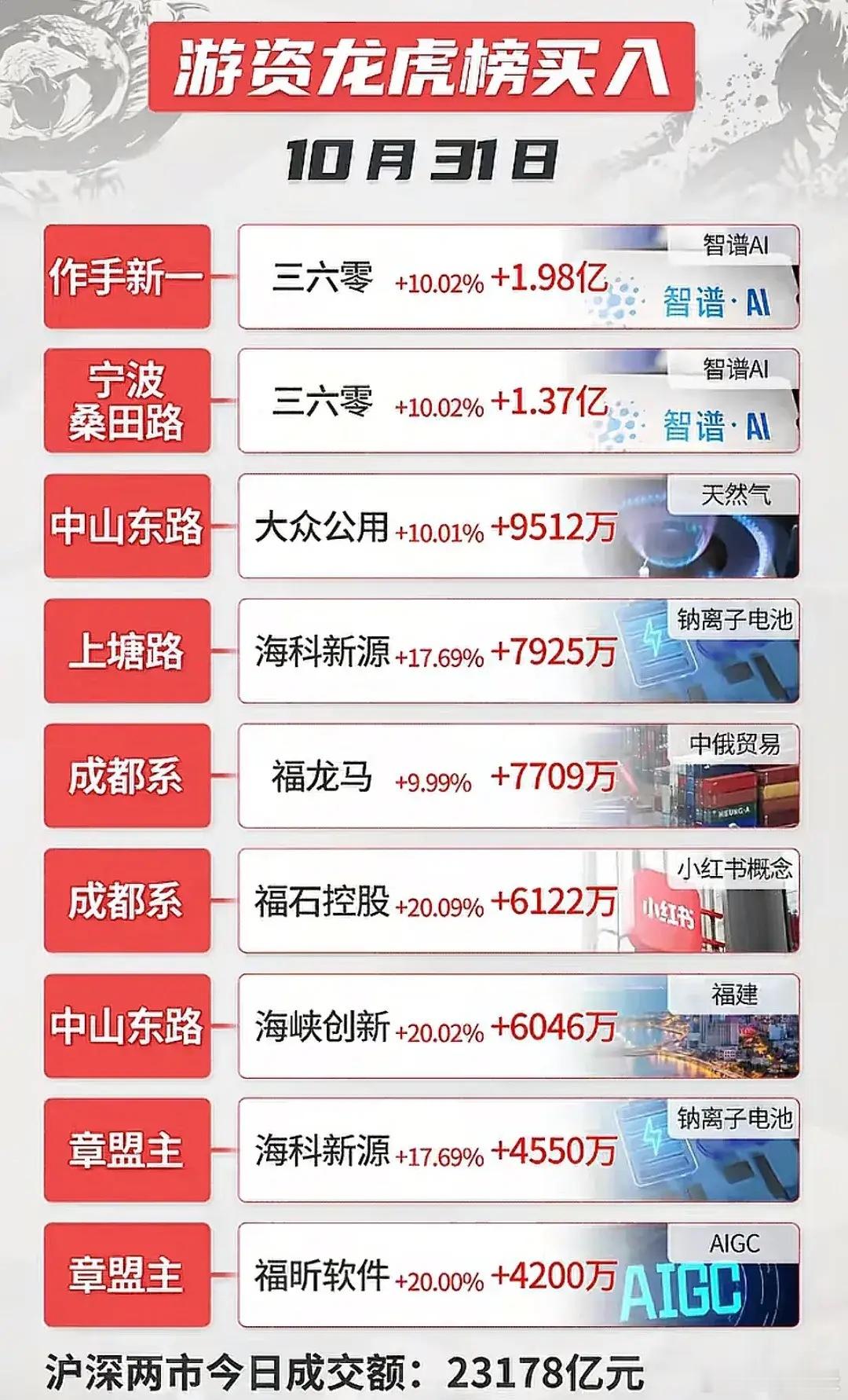 10月31日龙虎榜游资大佬操作鉴赏