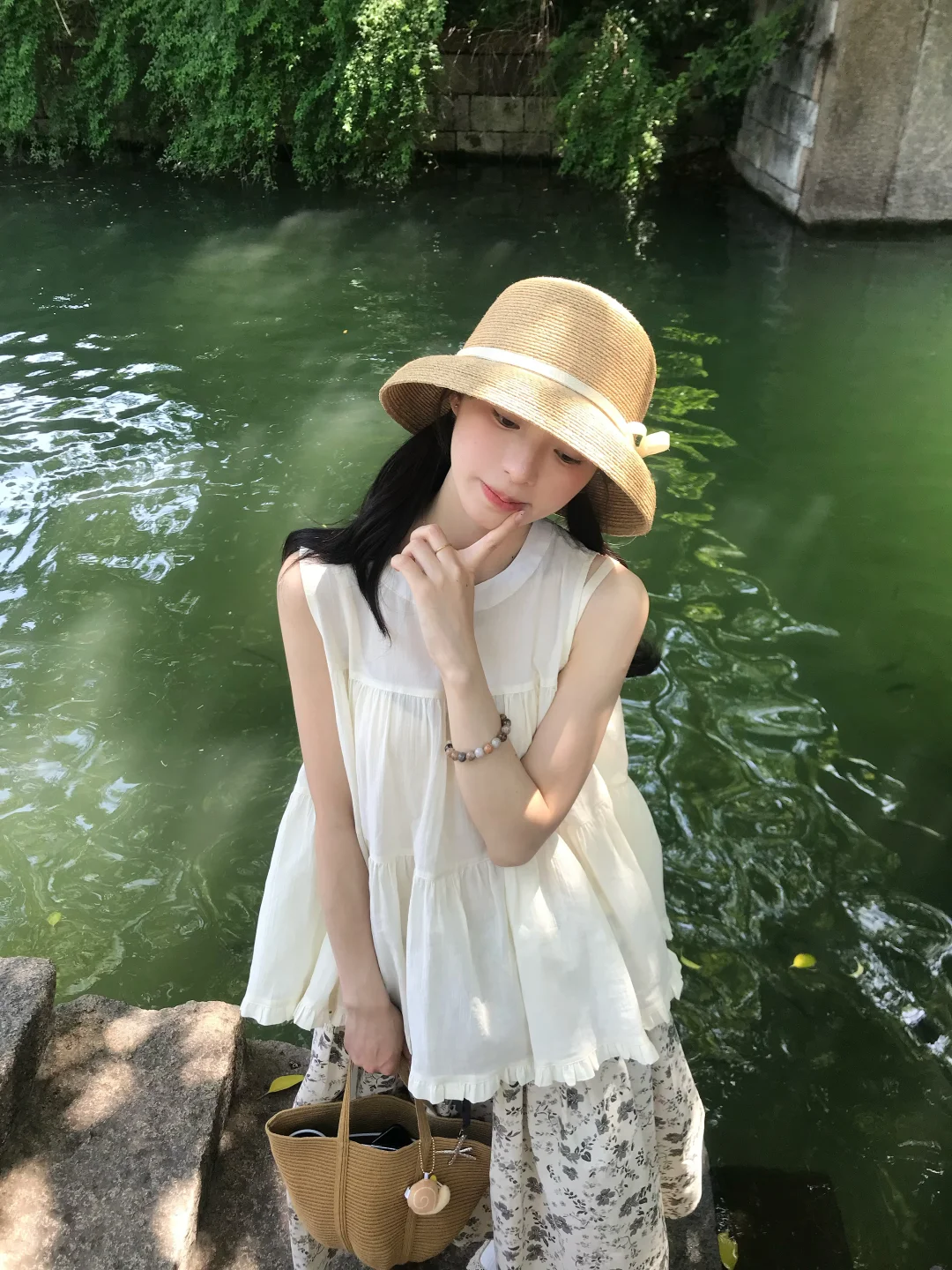 夏日清新穿搭,条纹背心+高腰短裤,轻松自在,元气满满!🌞👗💃