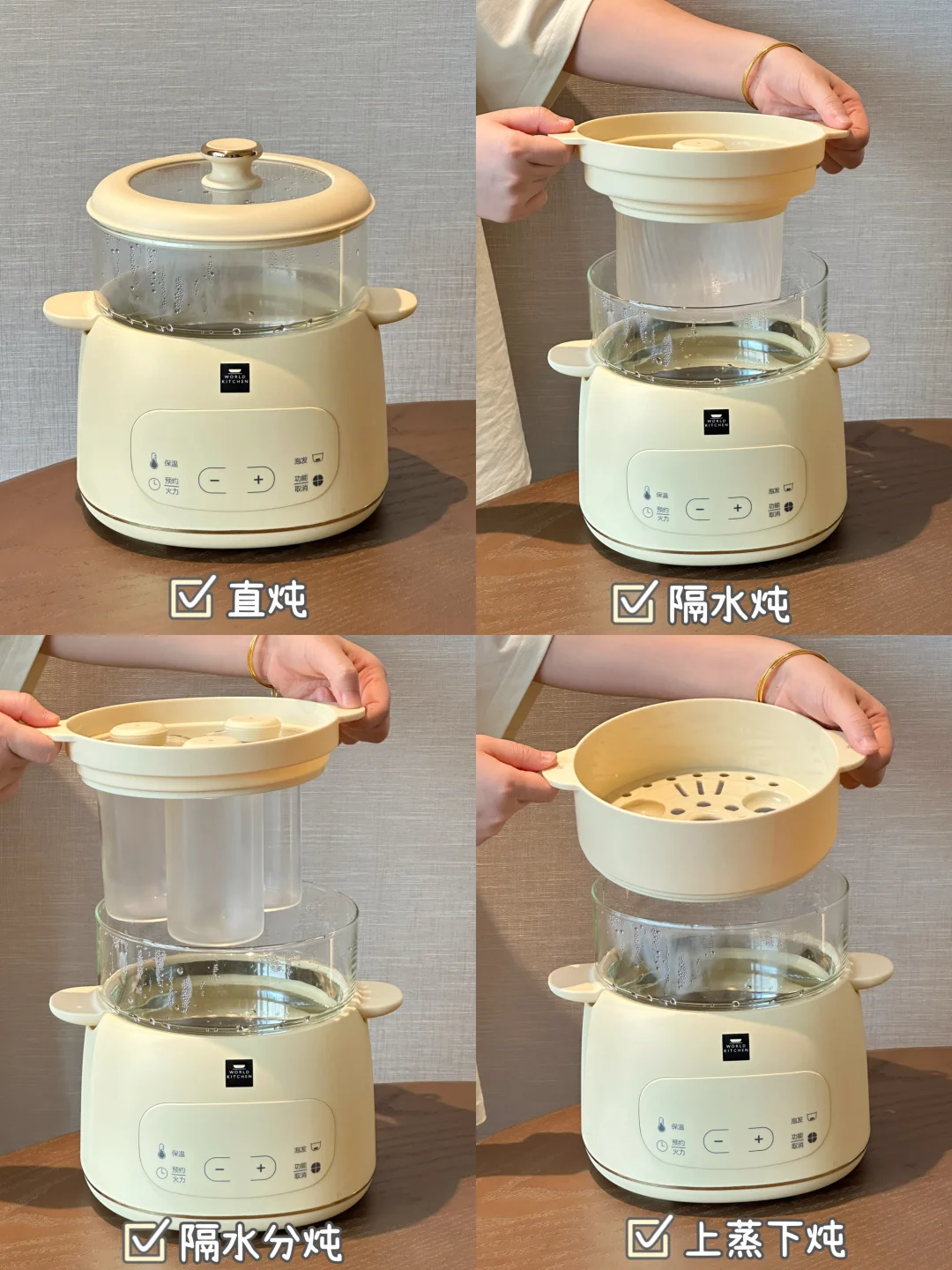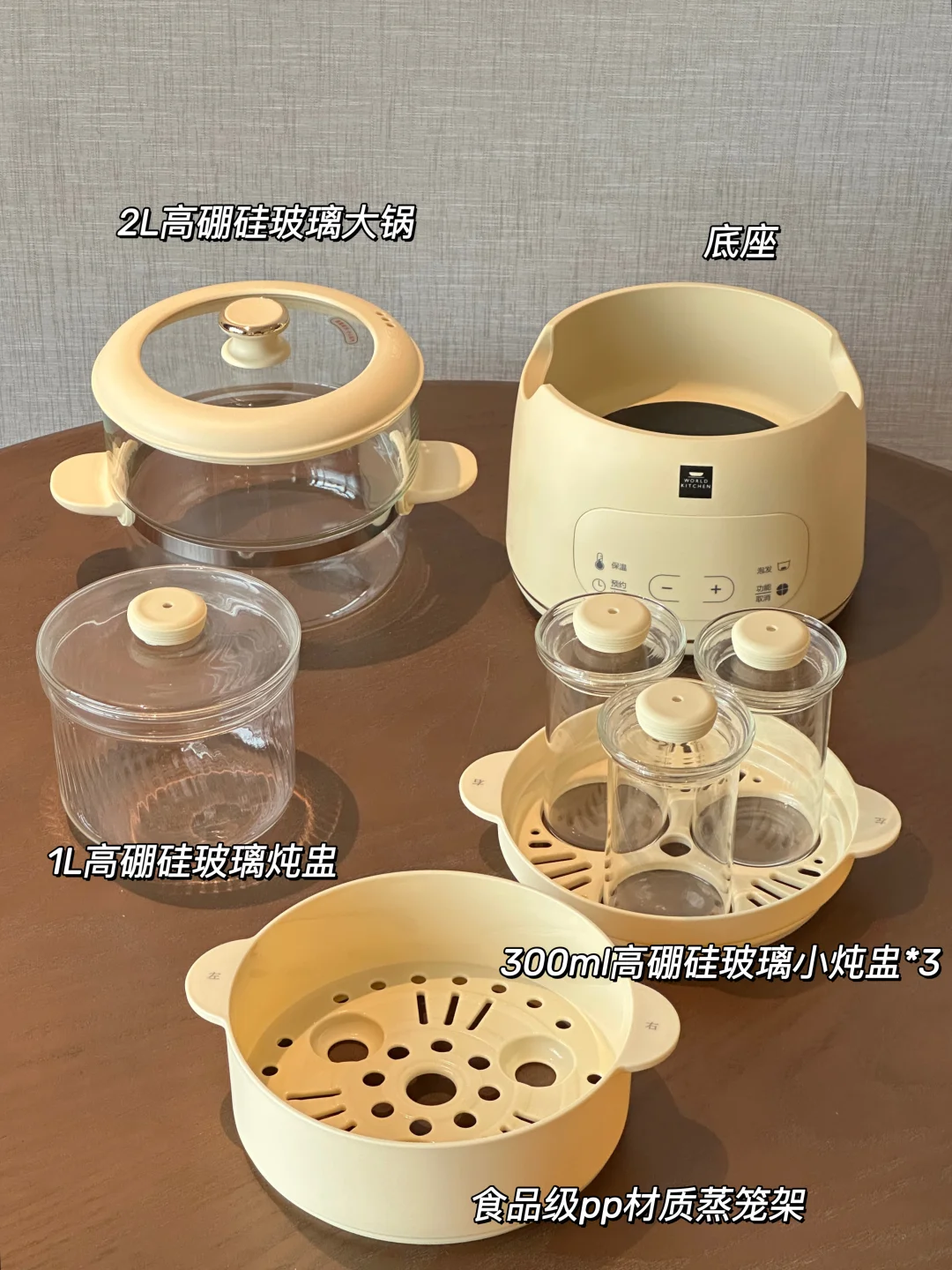 2升大容量外锅+1升大炖盅+3个300毫升小炖盅+蒸笼