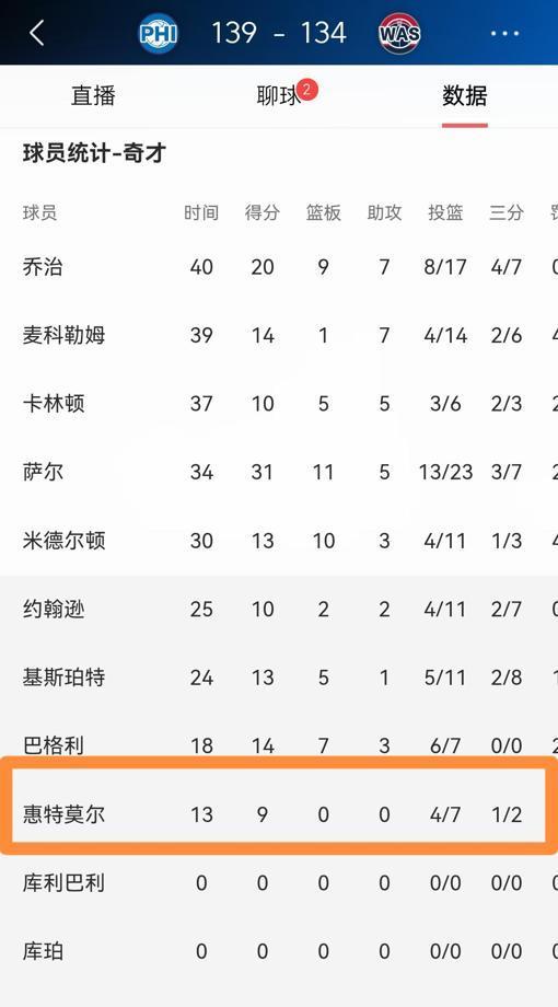 卡姆·惠特摩尔一分钟能抢断两次,却只打15分钟。 他G联赛打28分钟轰26分,奇才说:他还小,得慢慢来。 可球队15胜53负,重建不是等来的,是拼出来的。 库兹马35分钟,阿夫迪亚28分钟,他15分钟,不是他不够火,是火没点对地方。 弹跳40英寸,像弹簧人,球却总在别人手里。 新秀里抢断排第二,防守像隐形刺客,教练却怕他犯规。 猛龙的巴恩斯,第一年也是替补,第二年直接带飞。 奇才不缺天赋,缺的是敢用狠人的胆子。 全明星后,给25分钟,让他冲。 输赢是结果,成长是过程。 再不动他,等他去别的队发光,你才喊可惜? 他不是练习生,是能撕开防线的武器。 别把潜力锁在板凳上,那叫浪费,不叫培养。