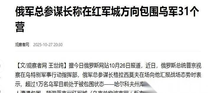 我看到这数字,后背都凉了。 31个营,乌军正儿八经的番号部队,被围了。你猜多少人? 五千五。 我掰着指头算了半天,一个营摊下来170来号人。你敢信吗?这连个满编的连都不够。搁咱们这儿,一个营加上后勤炮兵,小一千人打不住。这哪是部队啊,这是一群散兵。 这不是一两天被打成这样的。 人家俄军跟下围棋似的,从五月份就开始落子,一点点收口。先用电子战把你的“星链”信号掐了,让你变成聋子瞎子。然后无人机天天在你指挥部头顶上转悠,“伊斯坎德尔”专挑军官开会的地方炸。 先把脑子给你干废了。 等你反应过来,人家的“柳叶刀”巡飞弹,能打110公里,把所有通往前线的公路都给你扬了。补给?增援?想都别想。最后,咔嚓一下,把最后一条公路和铁路也给堵死。 留给你一条土路,全程直播,走一个死一个。 温水煮青蛙,活活把你一万七千人的大军,耗到只剩五千五。 里头还有什么“第25空降旅”、“第79空降突击旅”,名头一个比一个响。可那都是以前了,现在就是个空架子,里头全是抓来的新兵,有的连反坦克导弹都没摸过,训练时拿个木棍比划两下就送上来了。 这不是打仗,这是填线。 老兵都跑光了。不是怕死,是绝望了。上头承诺150辆坦克,结果就来了20辆,让你拿着步枪去冲人家的炮兵阵地,谁不跑? 更绝的是,前线指挥官早就看明白,请求撤退。但上头不准,死命令,必须守。 我真不知道守啥。 守着这些空壳子的番号吗?还是守着那些拿着木棍上战场、炮火一响就注定消失的年轻生命? 这仗,其实早就打完了。