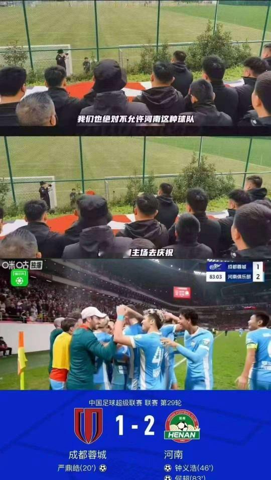 蓉城部分球迷已经疯了,赛后拿大喇叭训话球员,疑似和刘殿座等发生摩擦! 比赛中,有蓉城球迷打出歧视阿奇姆彭的动作。赛后指责自己球员。 说实话,俱乐部夏窗没有补强,蓉城这个阵容,踢到现在已经不容易了,球员都在透支,徐正源也在硬挺。 而为何河南打鸡血一样死拼,部分蓉城球迷应该负责,有些球迷觉得不能输河南,足球比赛就是这样, 当人家打鸡血拼命,而你自己又透支的情况下,你怎么可能赢呢?这里边最该反思的,不应该是部分极端球迷骂?成都蓉城队