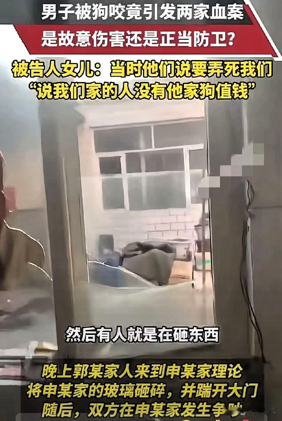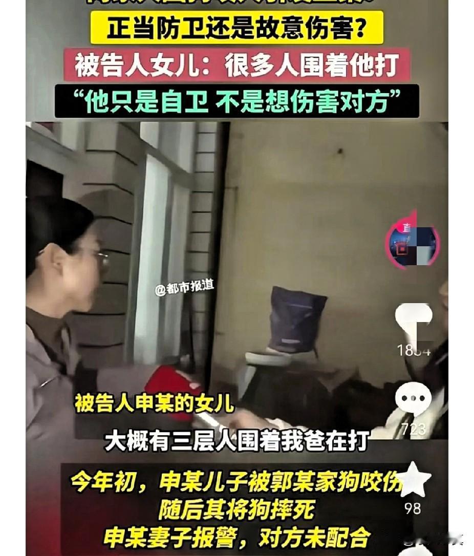 人命没有狗值钱?他只是防卫,不是杀人,山西为狗上门反被杀害,有了新的说法了 10月30日,山西长治申某的儿子面对镜头,讲述了一桩由宠物狗引发的悲剧。如今父亲因故意伤害罪被提起公诉,但在申家子女看来,父亲的行为实属正当防卫,这起命案的背后藏着一段充满争议的经过。 时间回溯到今年1月,申某的儿子被同村郭某家的狗咬伤,愤怒之下他打死了伤人的狗。由于两家此前并无矛盾,他本以为登门解释便能化解纠纷,还特意联系当地亲属希望出面调解,可从下午等到深夜,郭某一家始终未曾露面。让他没想到的是,就在自己等待调解的间隙,家中已然燃起冲突的导火索。 事实上,申家早已察觉到潜在风险,先后四次报警求助,警方叮嘱他们关好门窗,预判郭某家可能前来闹事。亲属也未愿意到场调解,仅重复着关门避险的提醒。申家人心怀恐惧,严格遵照指引紧闭家门,却没能挡住失控的局面。 郭某带着一众亲信登门“讨要说法”,见申家闭门不开,便直接砸门破窗强行闯入。申某的女儿回忆,当晚有三层人围着父亲殴打,父亲被打得惨叫连连,在寡不敌众、无力反抗的绝境下,慌乱中摸到一把刀。 “父亲不是故意要伤人,只是挥刀想逼退对方。”申家子女强调,当时父亲被围殴得无法脱身,持刀乱挥仅为自保,目的是阻止他人继续伤害自己,并非蓄意伤人。可混乱中,多名闯入者被划伤,狗主人郭某因伤势过重不幸身亡。 如今,申某因故意伤害罪被提起公诉,但申家子女始终无法认同这一指控。在他们看来,郭某等人非法侵入住宅并实施殴打,父亲的反抗是为了保护自身安全,完全符合正当防卫的情形。 一桩因犬只伤人引发的纠纷,最终酿成命案和司法争议。非法侵入住宅是否构成防卫前提?情急之下的挥刀自保能否认定为正当防卫?这起案件的走向,也让公众对正当防卫的界定标准再度产生关注。