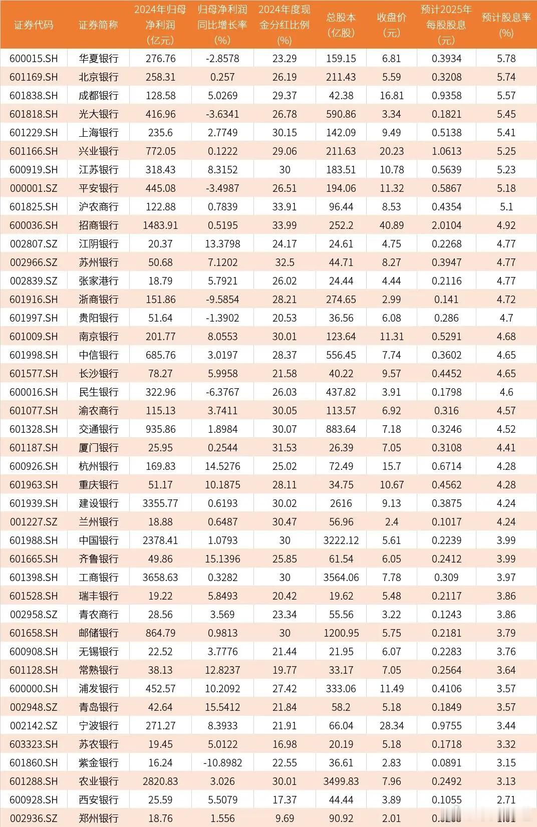 现在有9只银行股预计股息率超过了5%,在当下这个市场环境里,这挺有吸引力的。