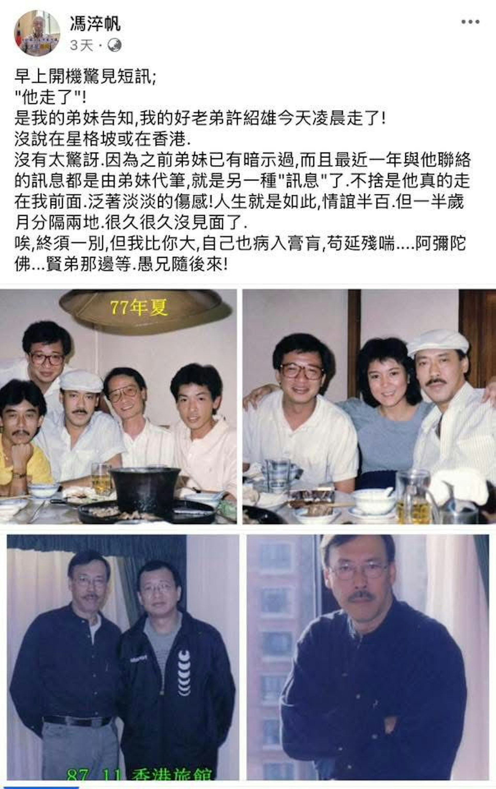 冯淬帆3天前还在悼念许绍雄,没想到他也走了,童年记忆里的香港演员,一个接一个离开